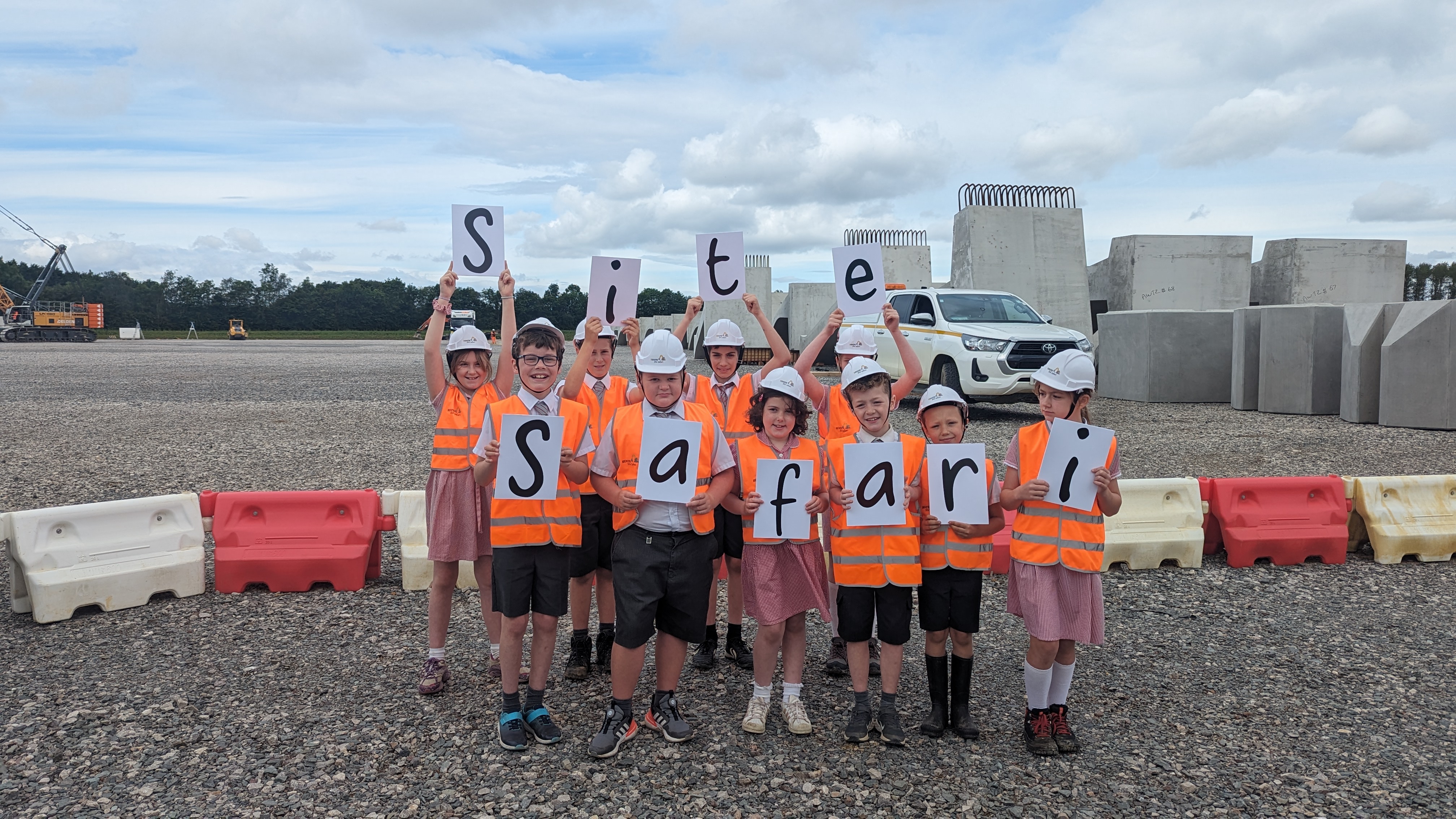 The pupils, aged 4-11, donned mini safety helmets and high-viz jackets before boarding the site safari vehicle for a tour hosted by HS2’s construction partner Eiffage, Kier, Ferrovial Construction and BAM Nuttall (EKFB).