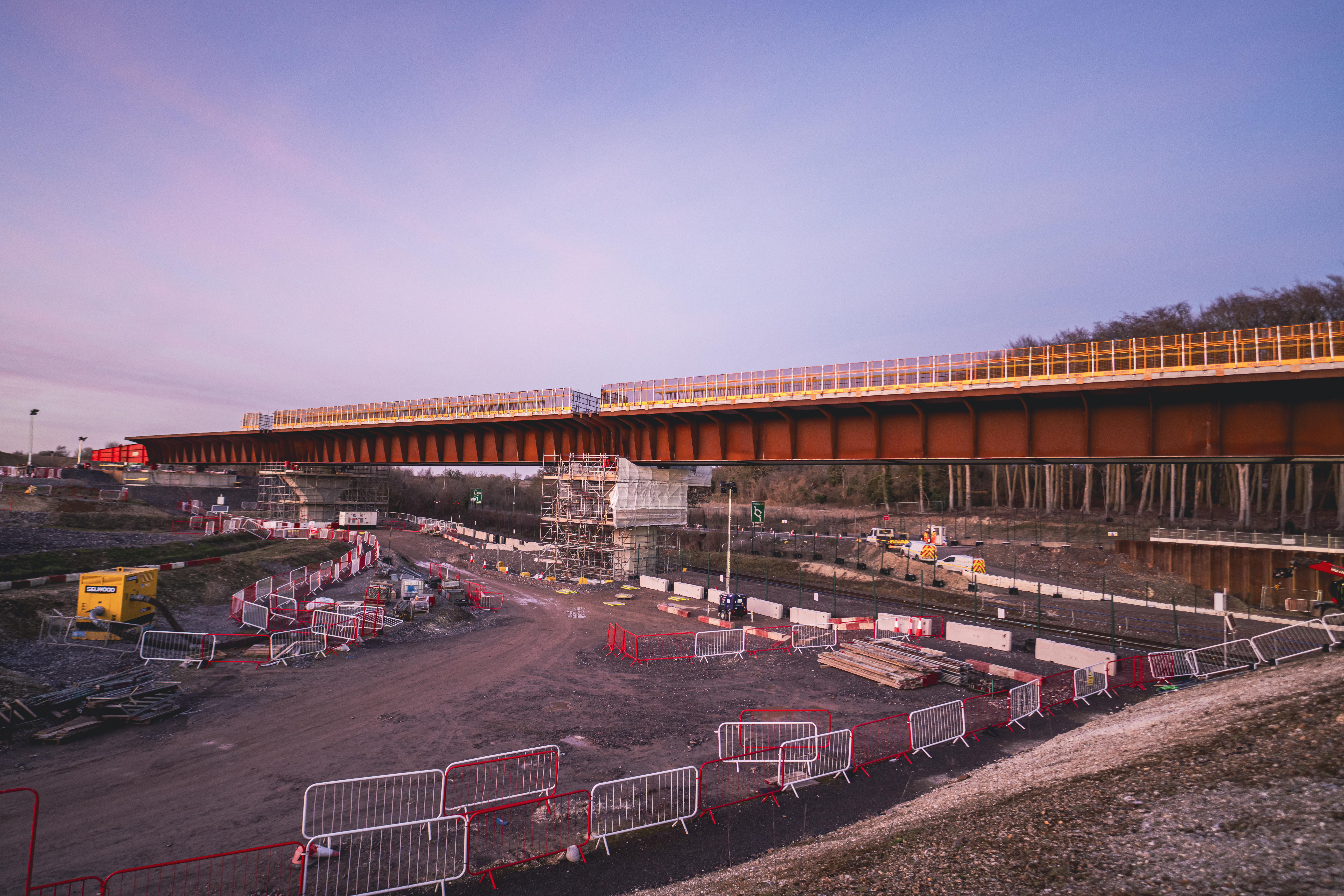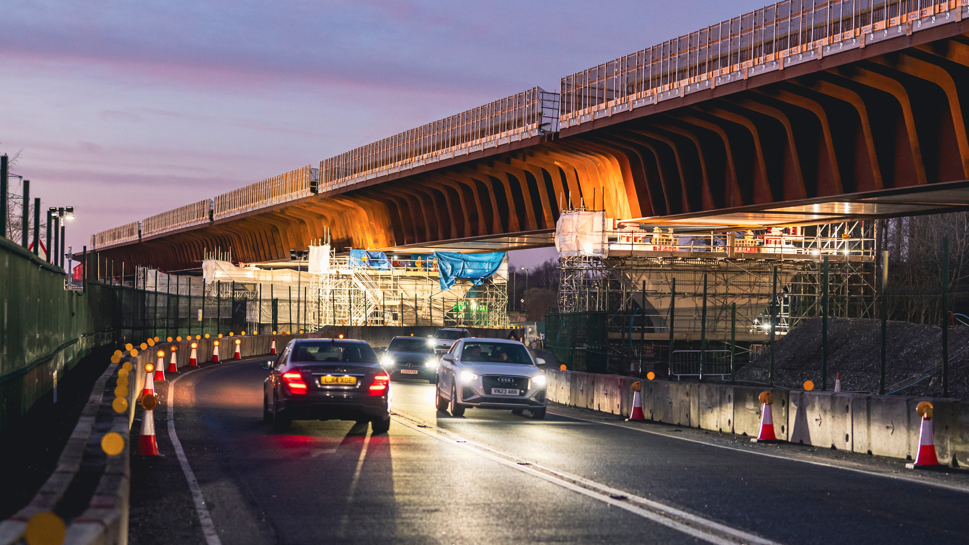 Both viaducts have innovative ‘double composite’ structures, with layers of reinforced concrete on the top and bottom to create a much more structurally efficient box-like span which dramatically cuts the amount of embedded carbon in the design.