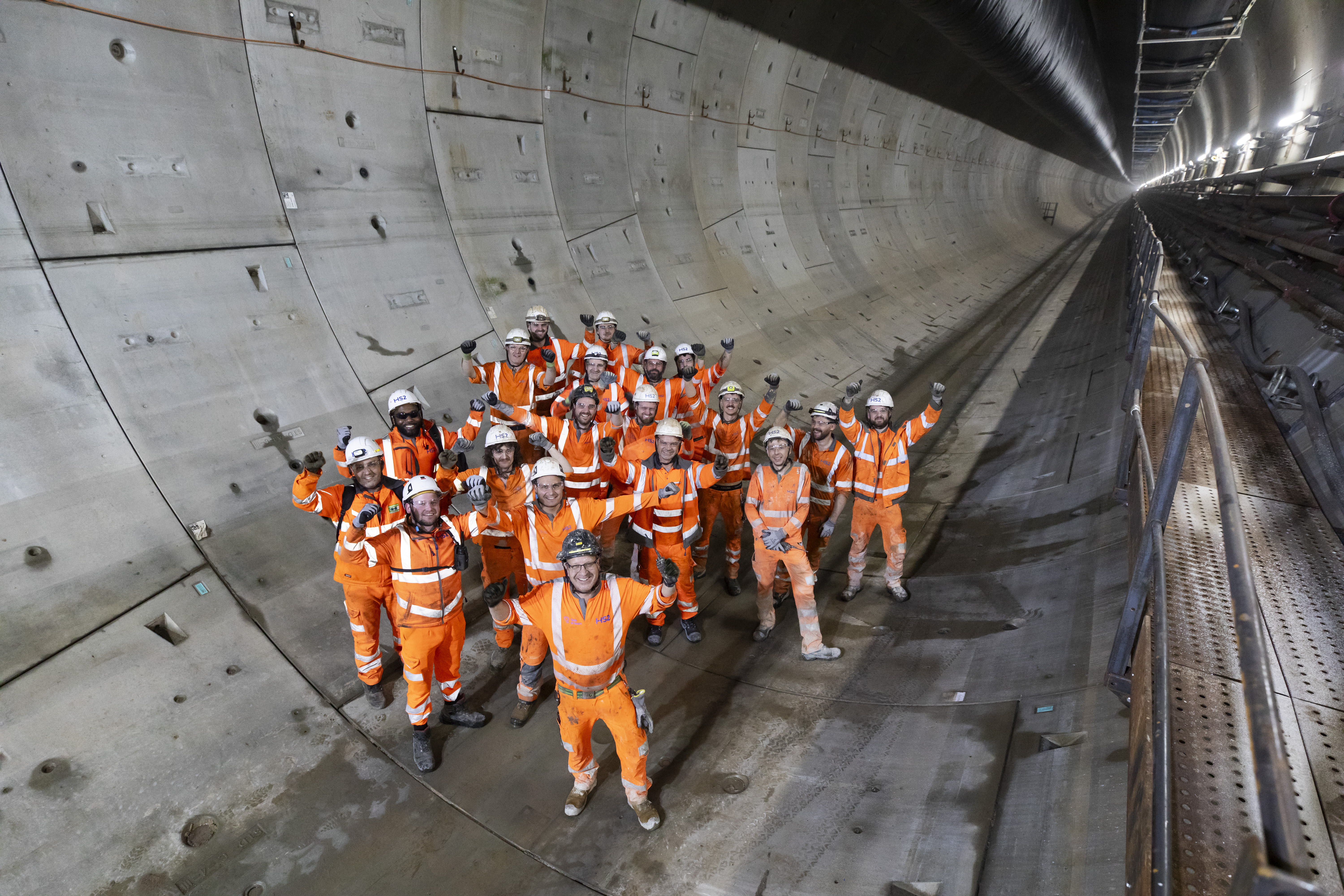 In image - Tunnelling team celebrating the milestone in the 5mile stretch of tunnel.