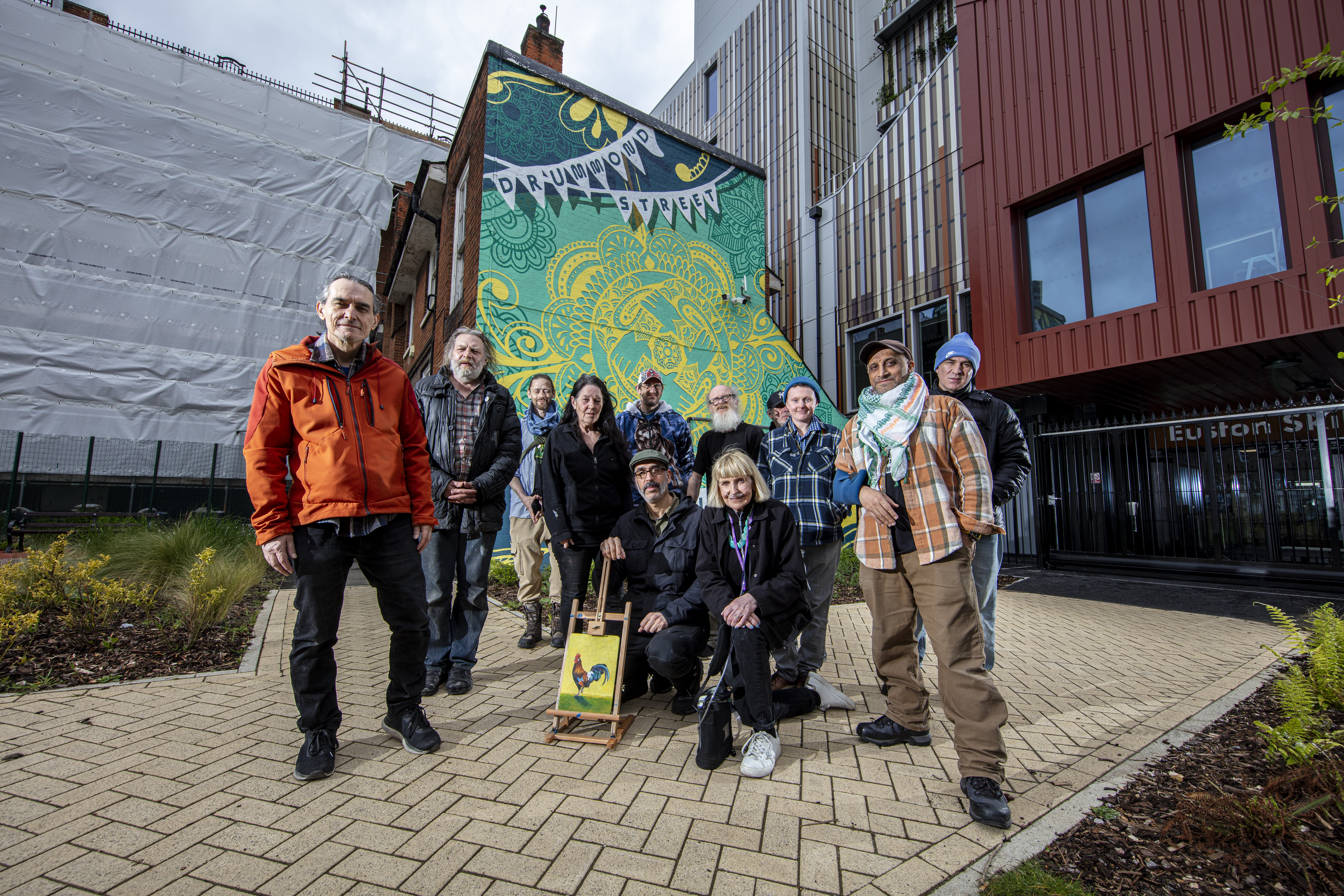 Drummond Street Artists outside the Neighbourhood Makeshop - A Meanwhile Use Project on the HS2 Euston site