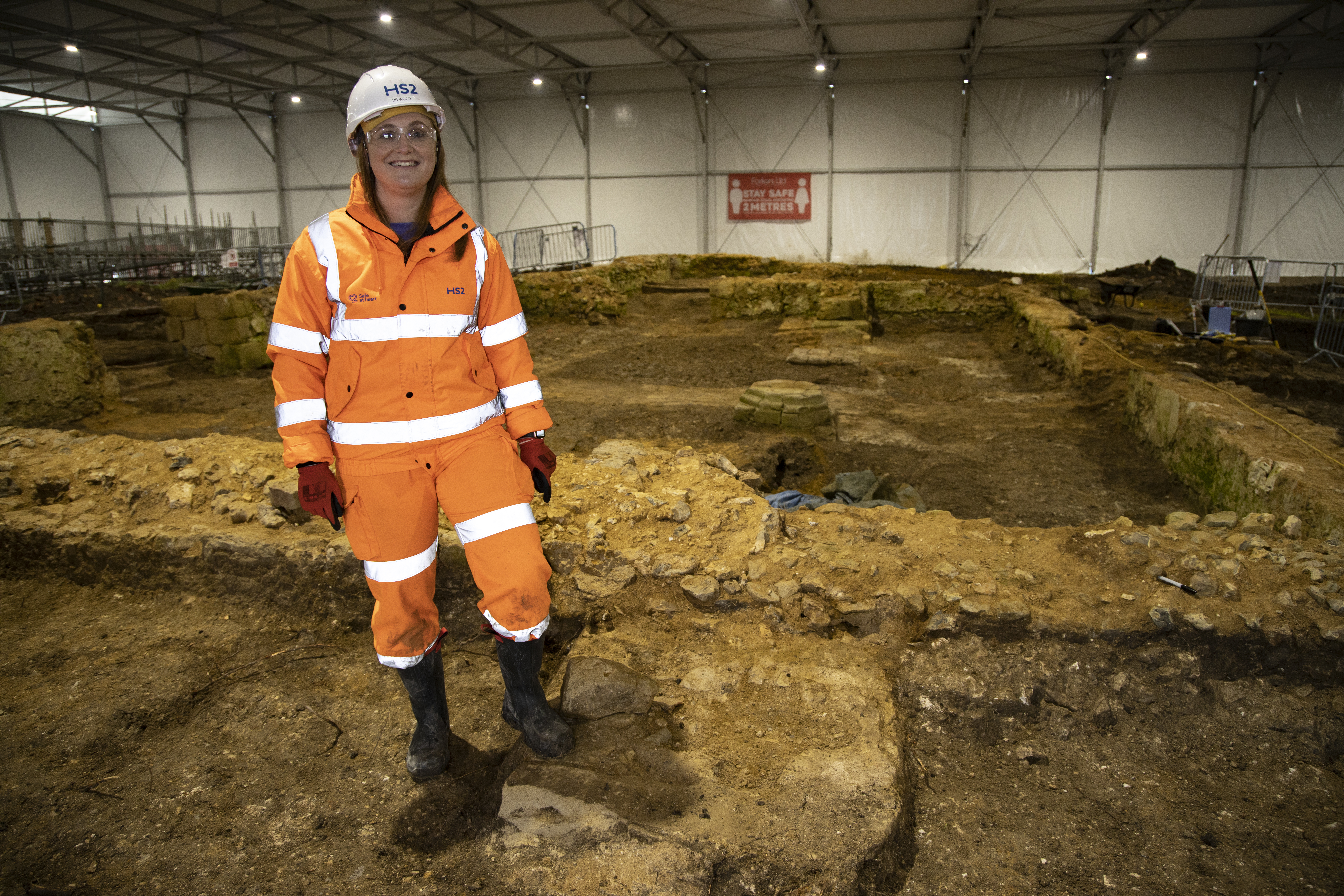 Dr Rachel Wood at St Mary's Church archaeological site, Stoke Mandeville