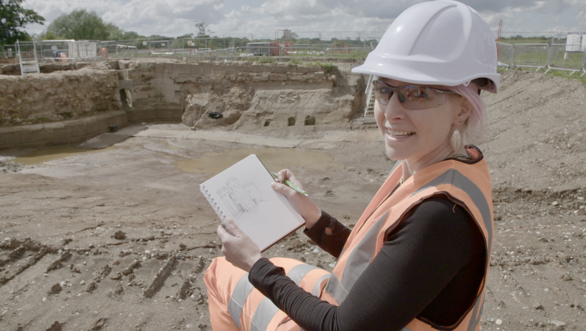 Download - Professor Alice Roberts sketching Coleshill Manor.png