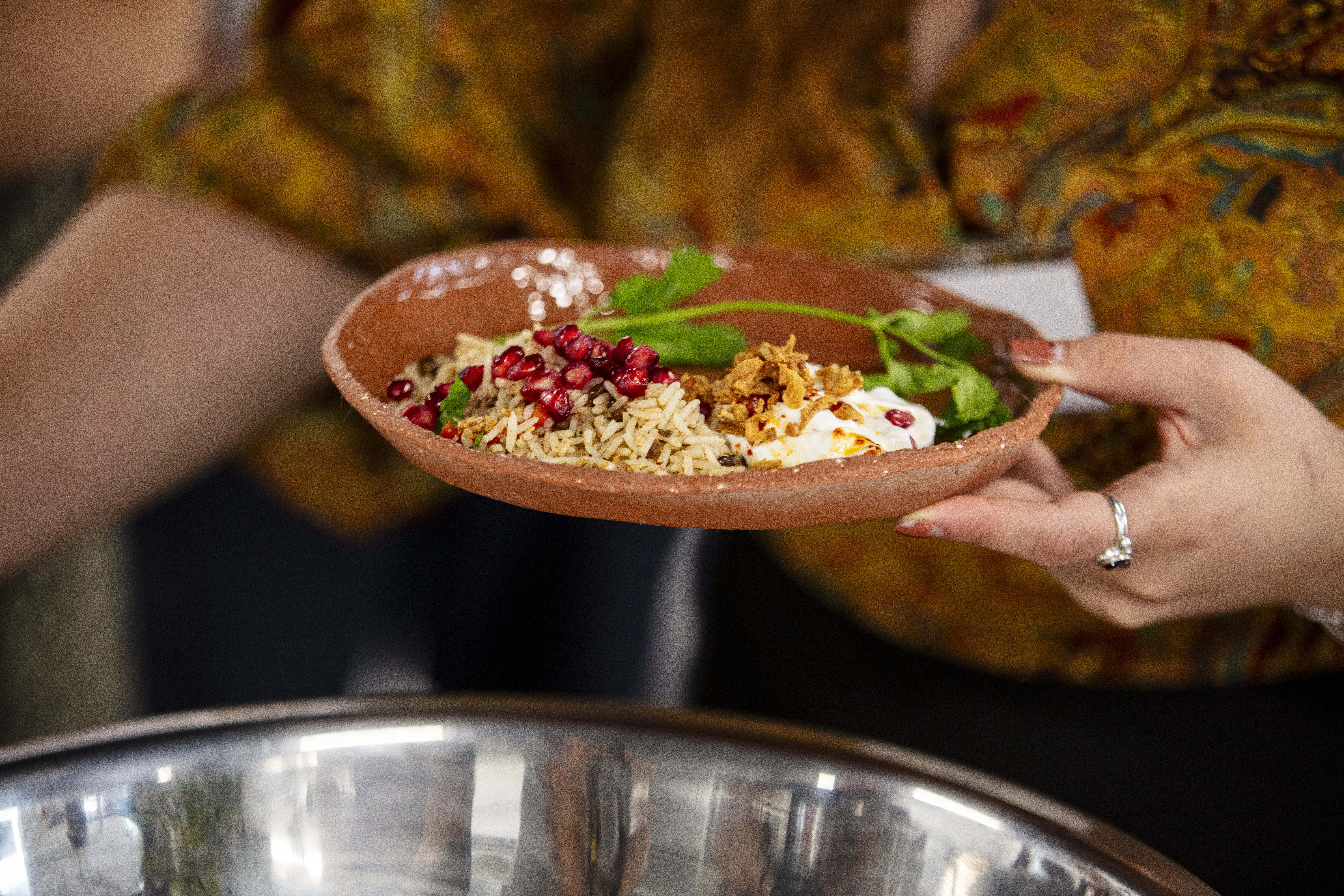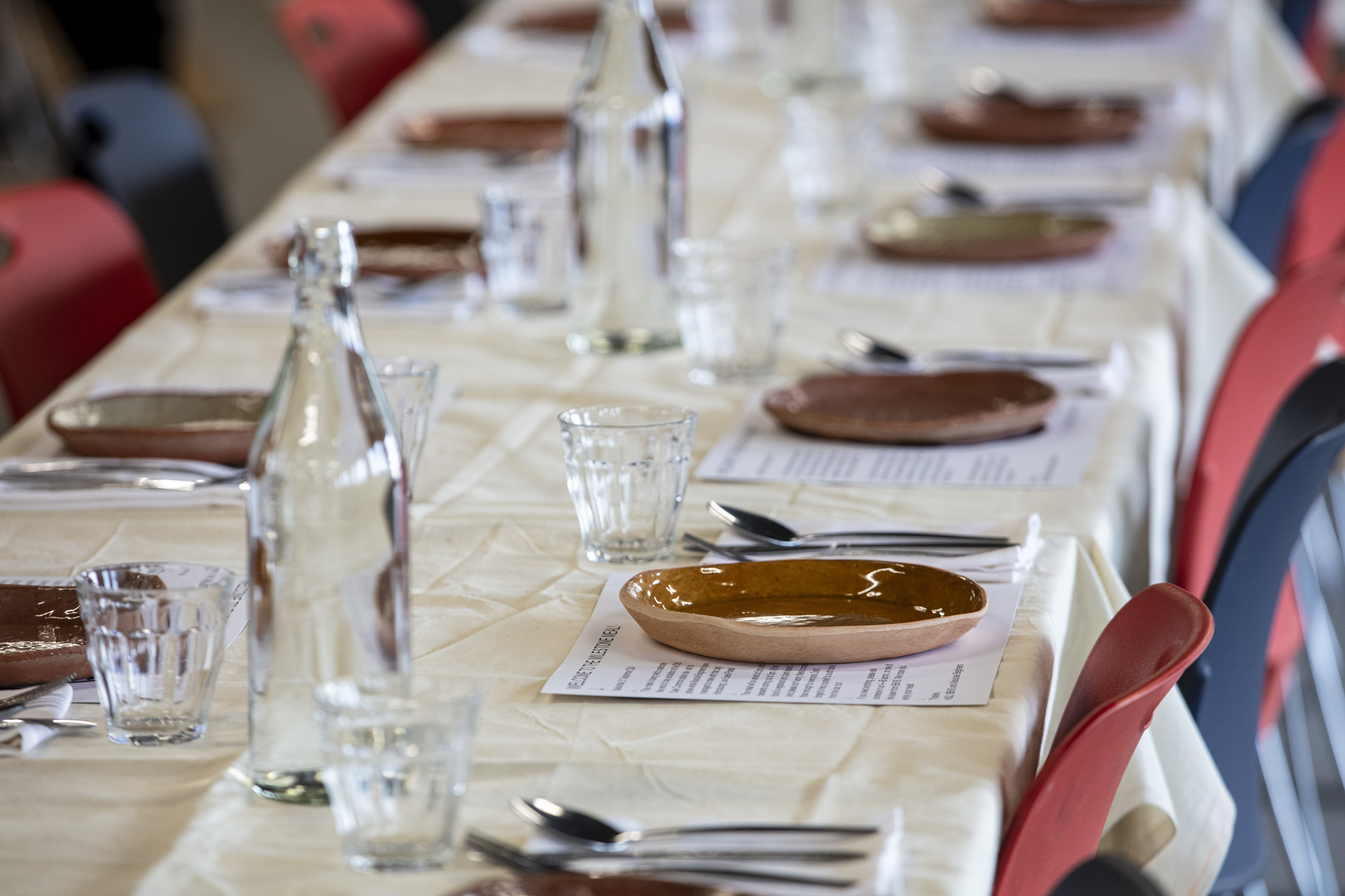 Community lunch at OOC using dinner service made by young people using excavated clay