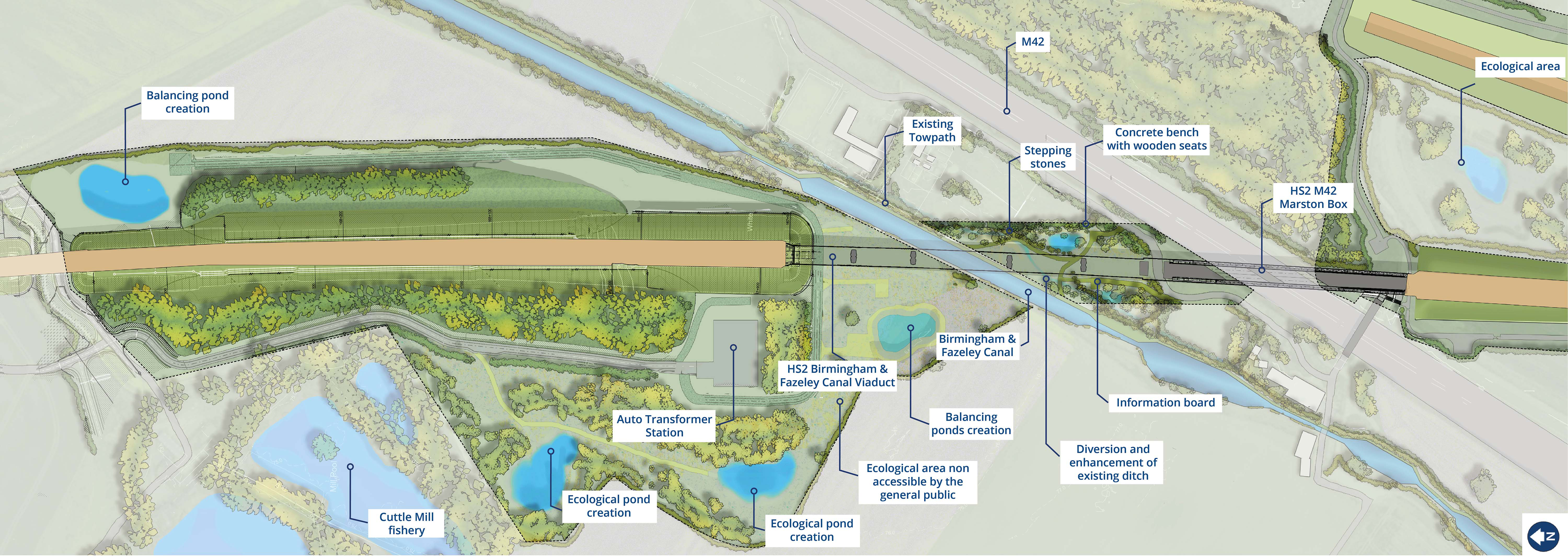 CGI of Birmingham and Fazeley Canal Viaduct - dedicated area for wildlife