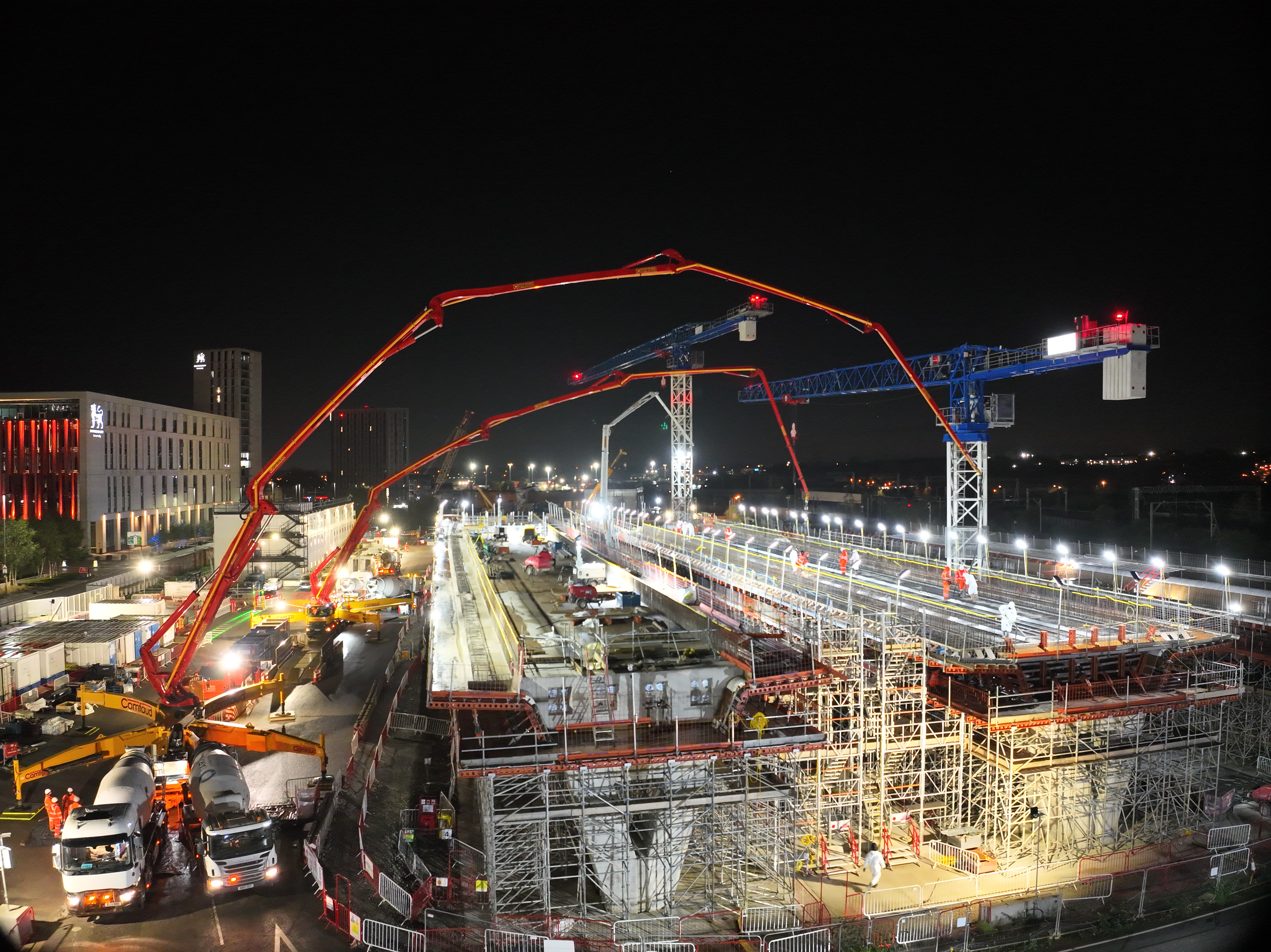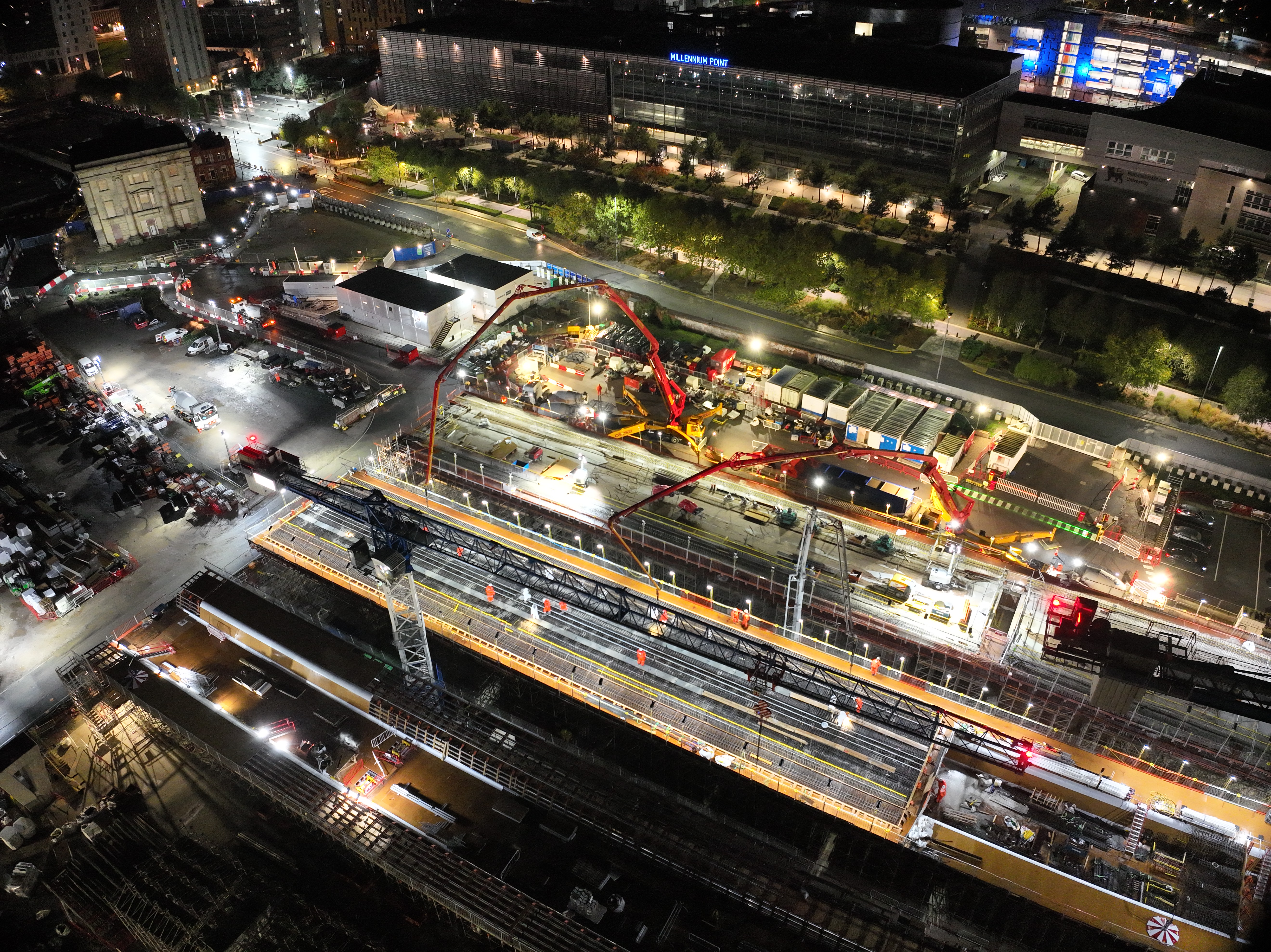 Concrete pour for Curzon 3 Viaducts deck - Millennium Point in the background
