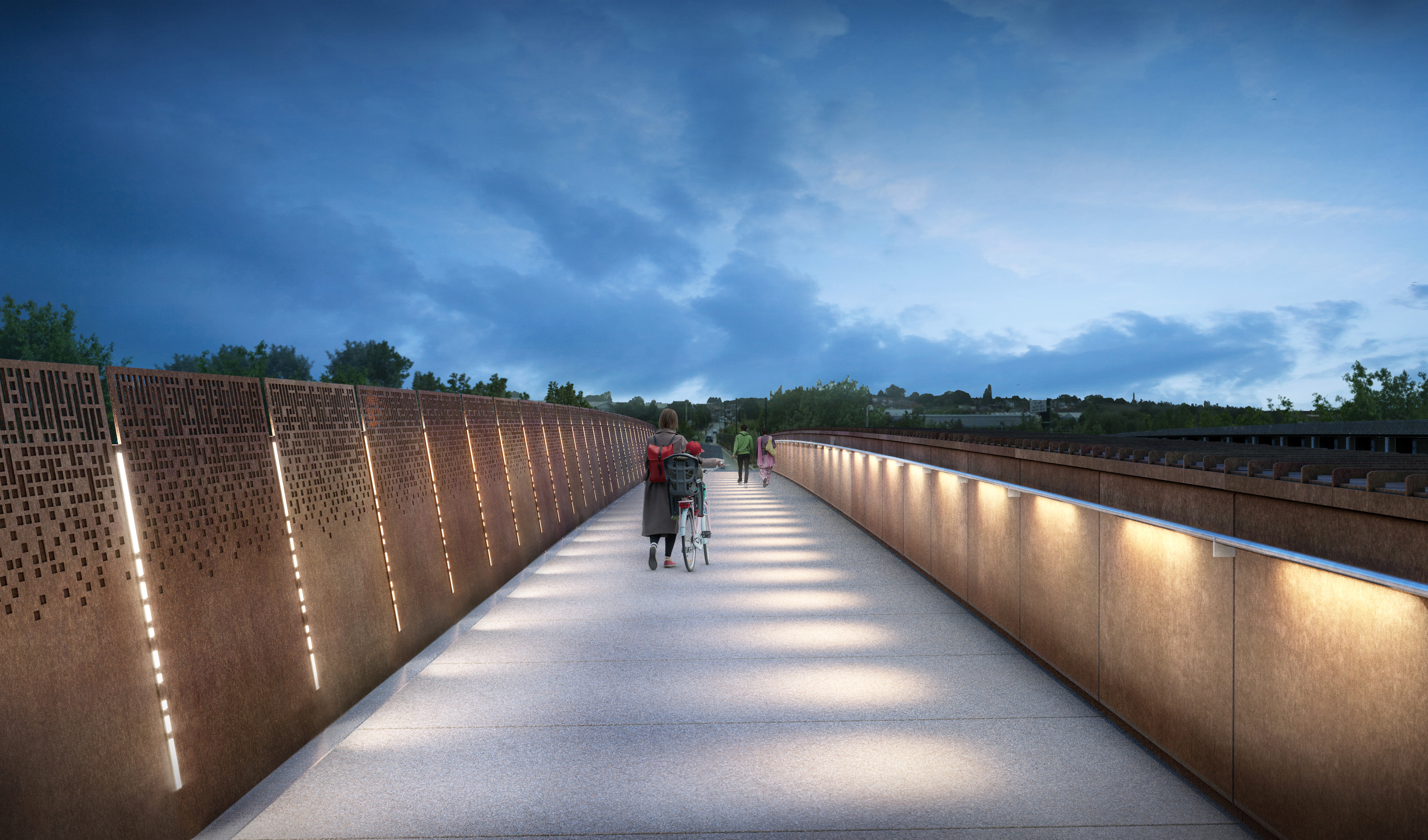 Saltley Viaduct pedestrian view east at night