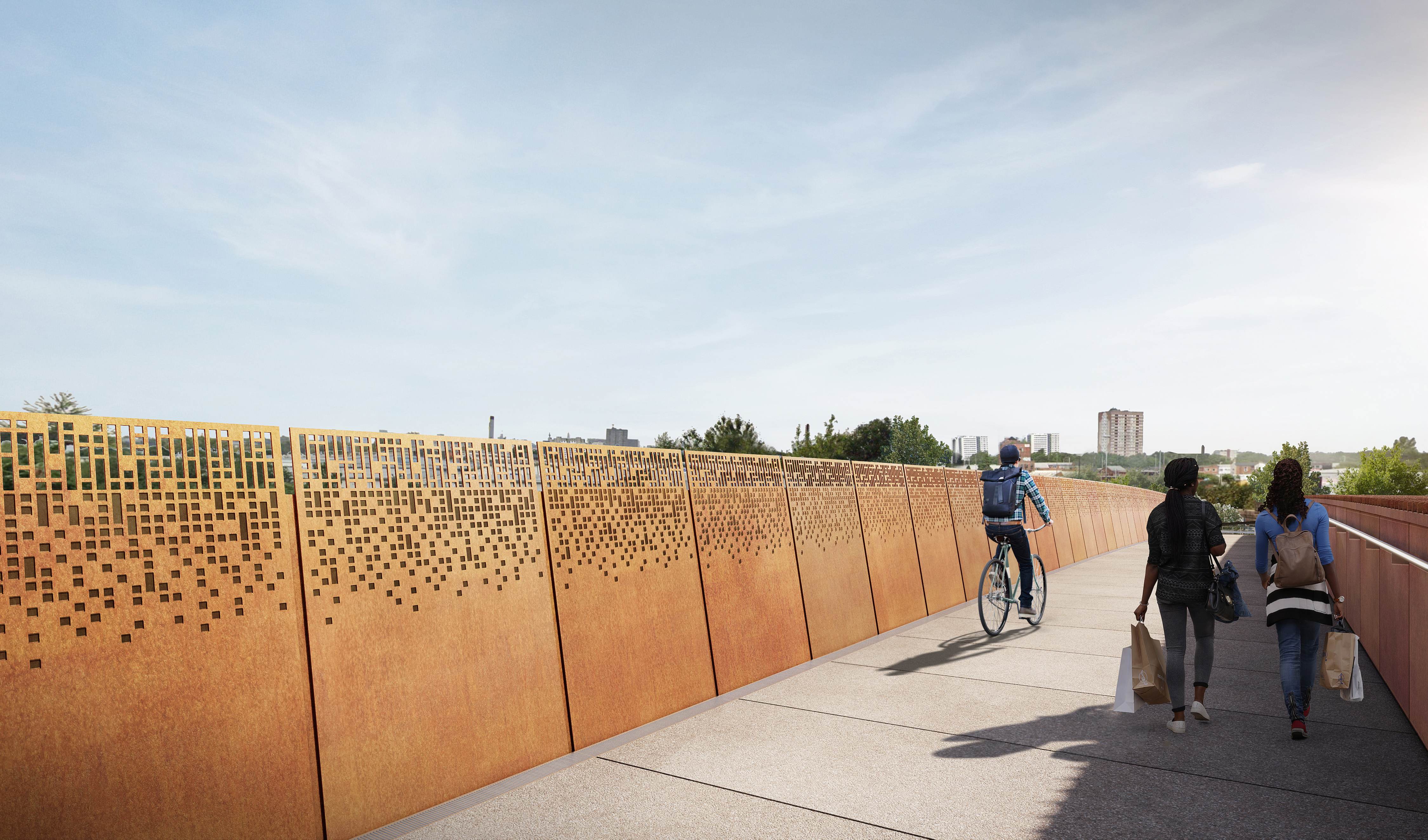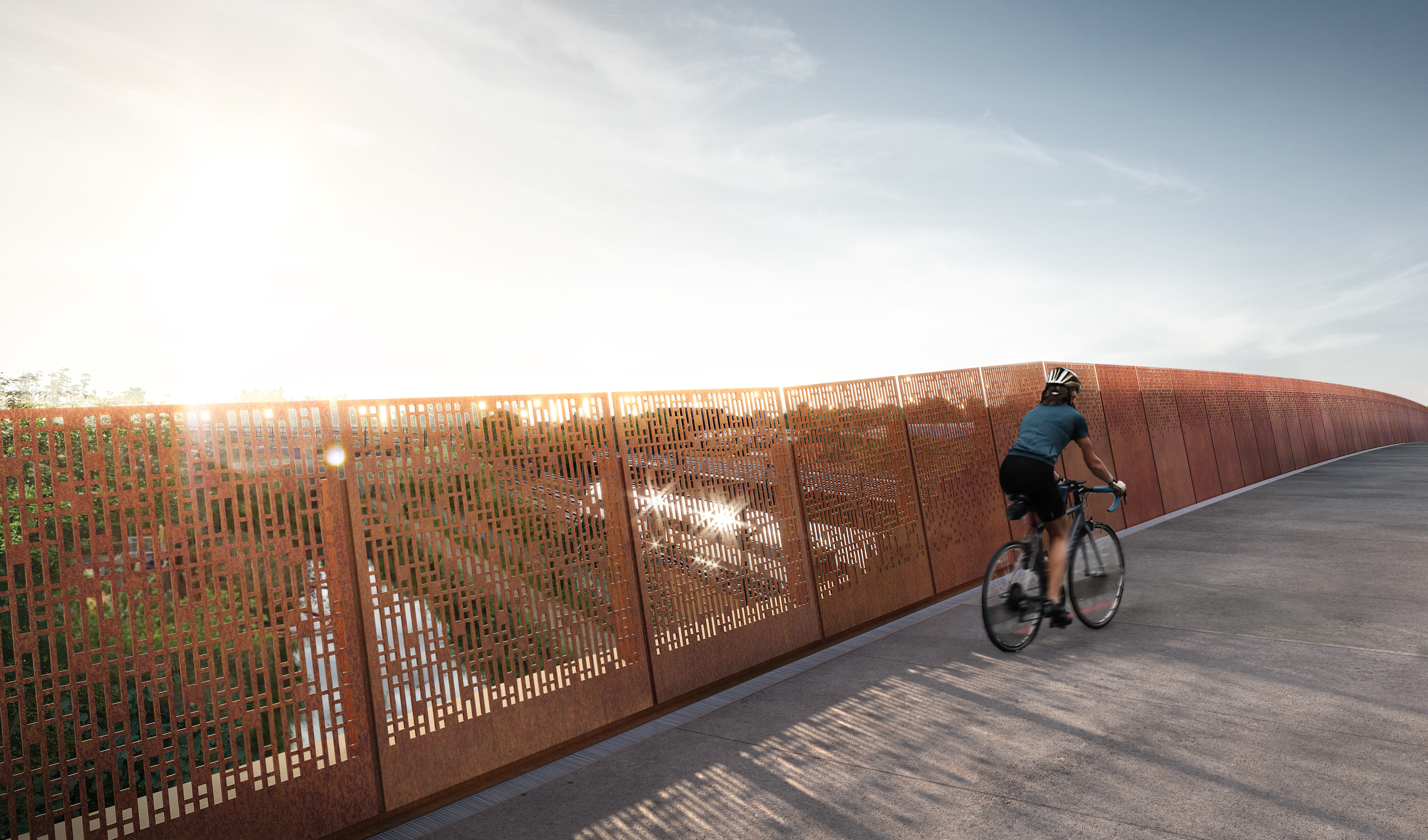 Cyclist crossing Saltley Viaduct