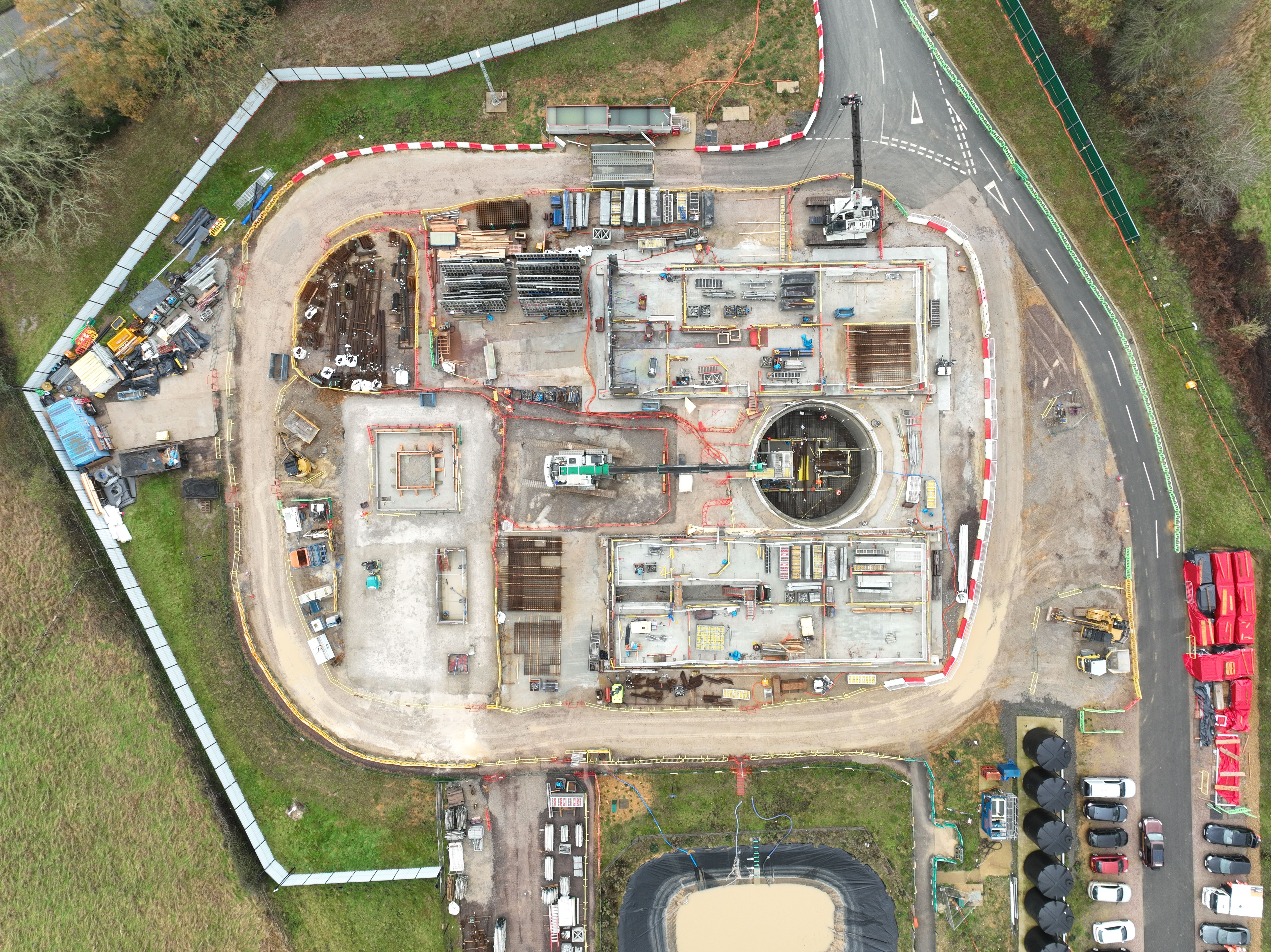 An aerial still of the Chesham Road shaft under construction, September 2022-2