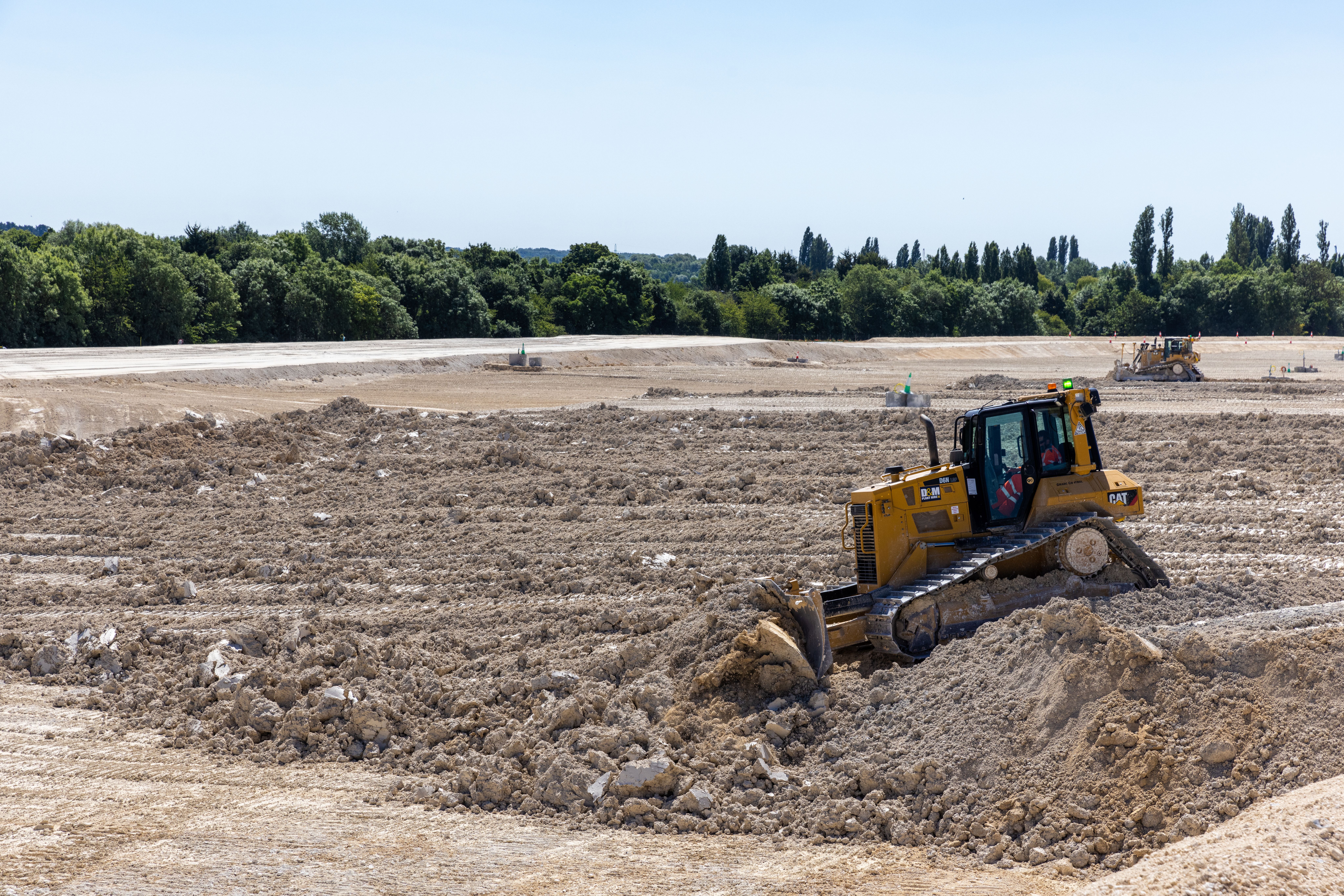 Bulldozer spreading chalk from the Chiltern tunnel - summer 2022