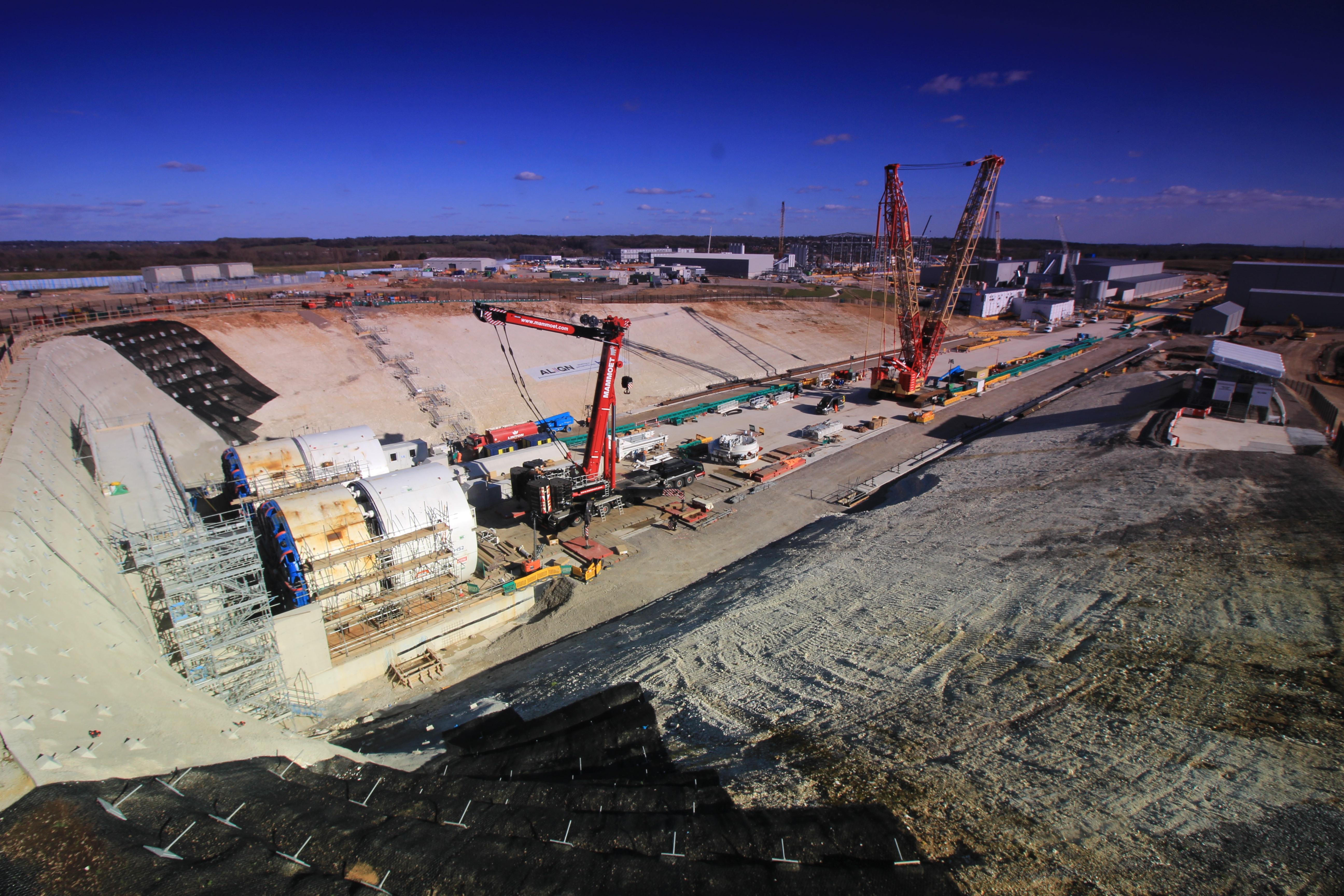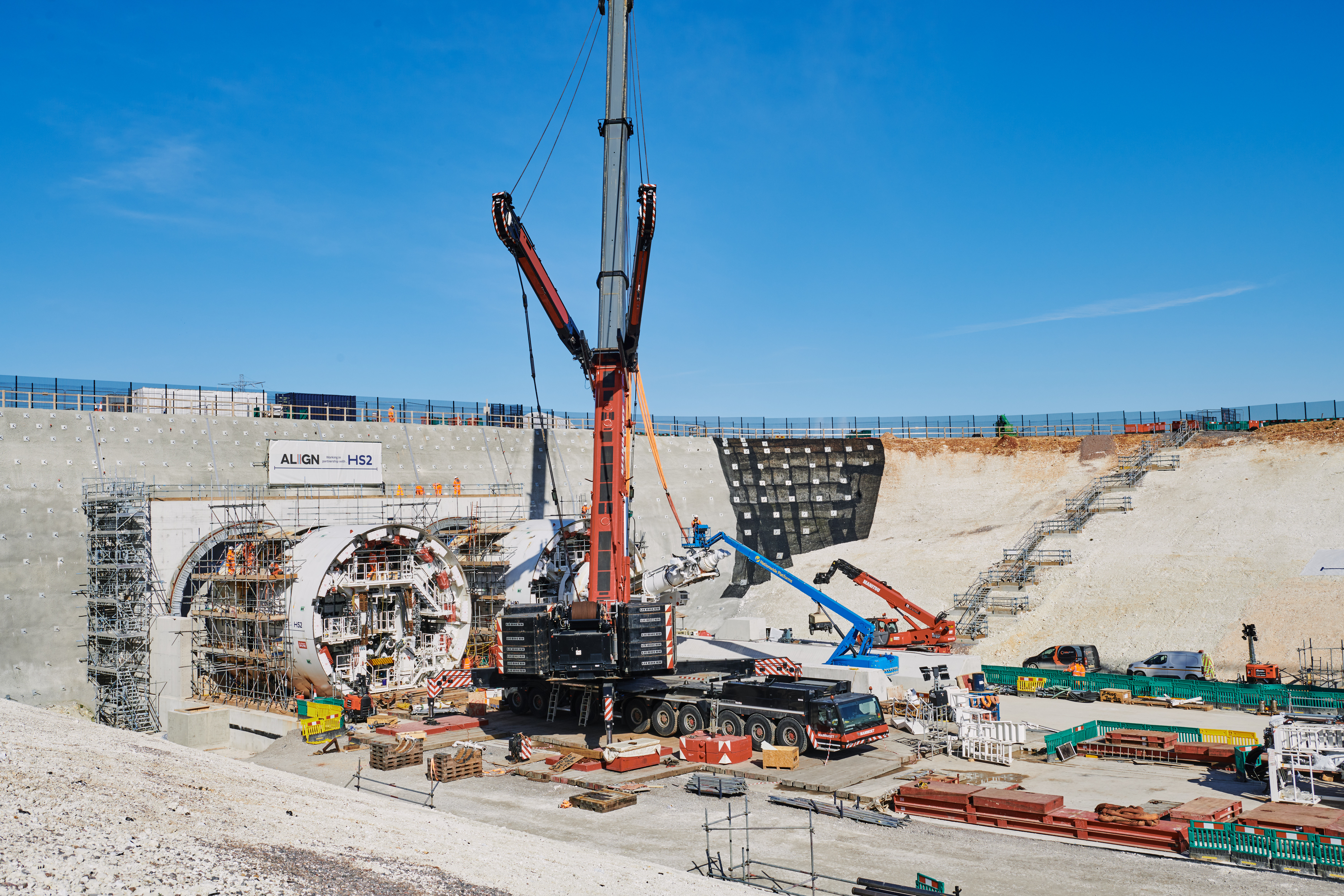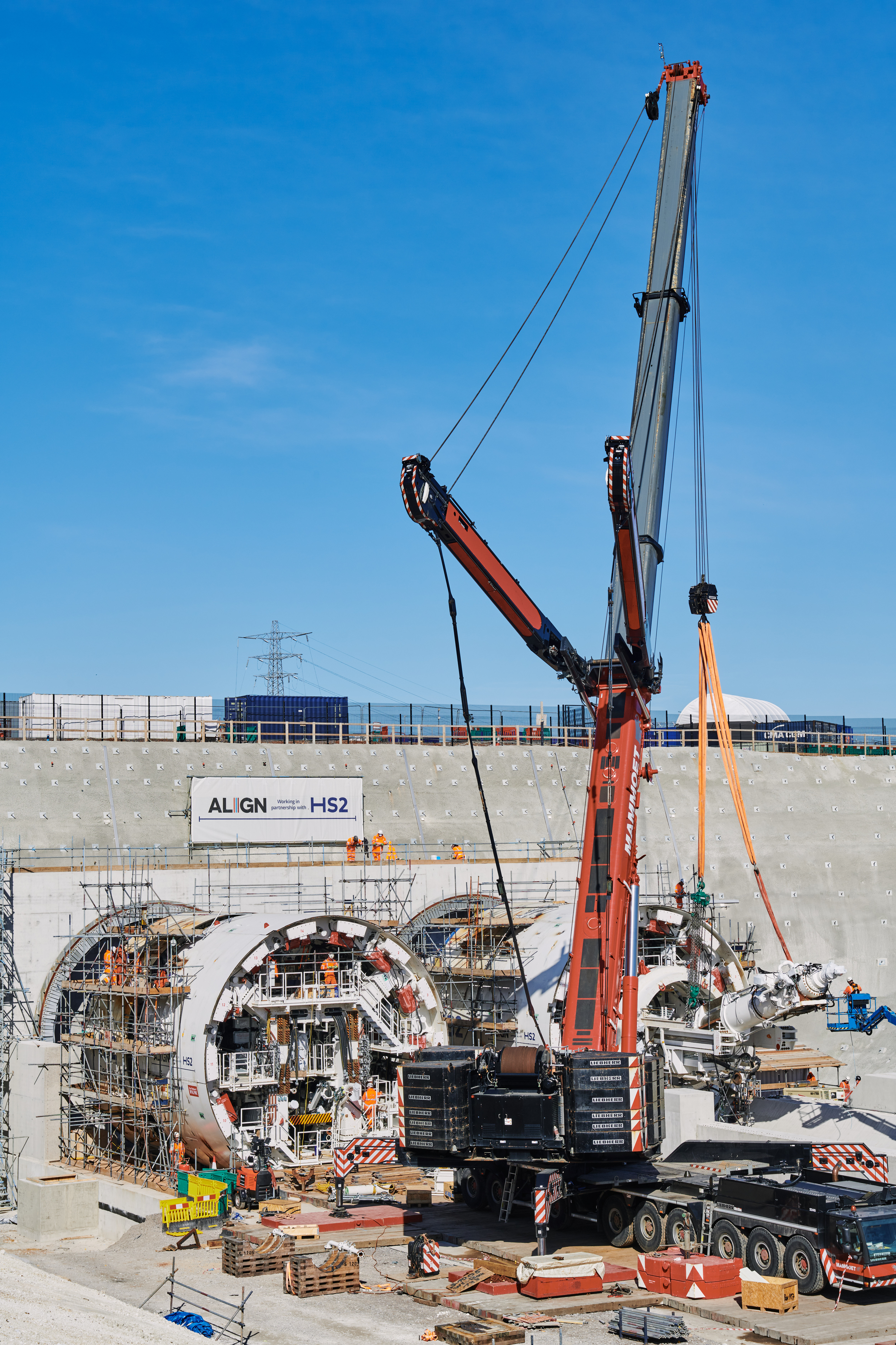 Engineer inspects a pre-cast concrete tunnel segment at HS2's Chiltern Tunnel on site factory in Hertfordshire HS2-VL-21912