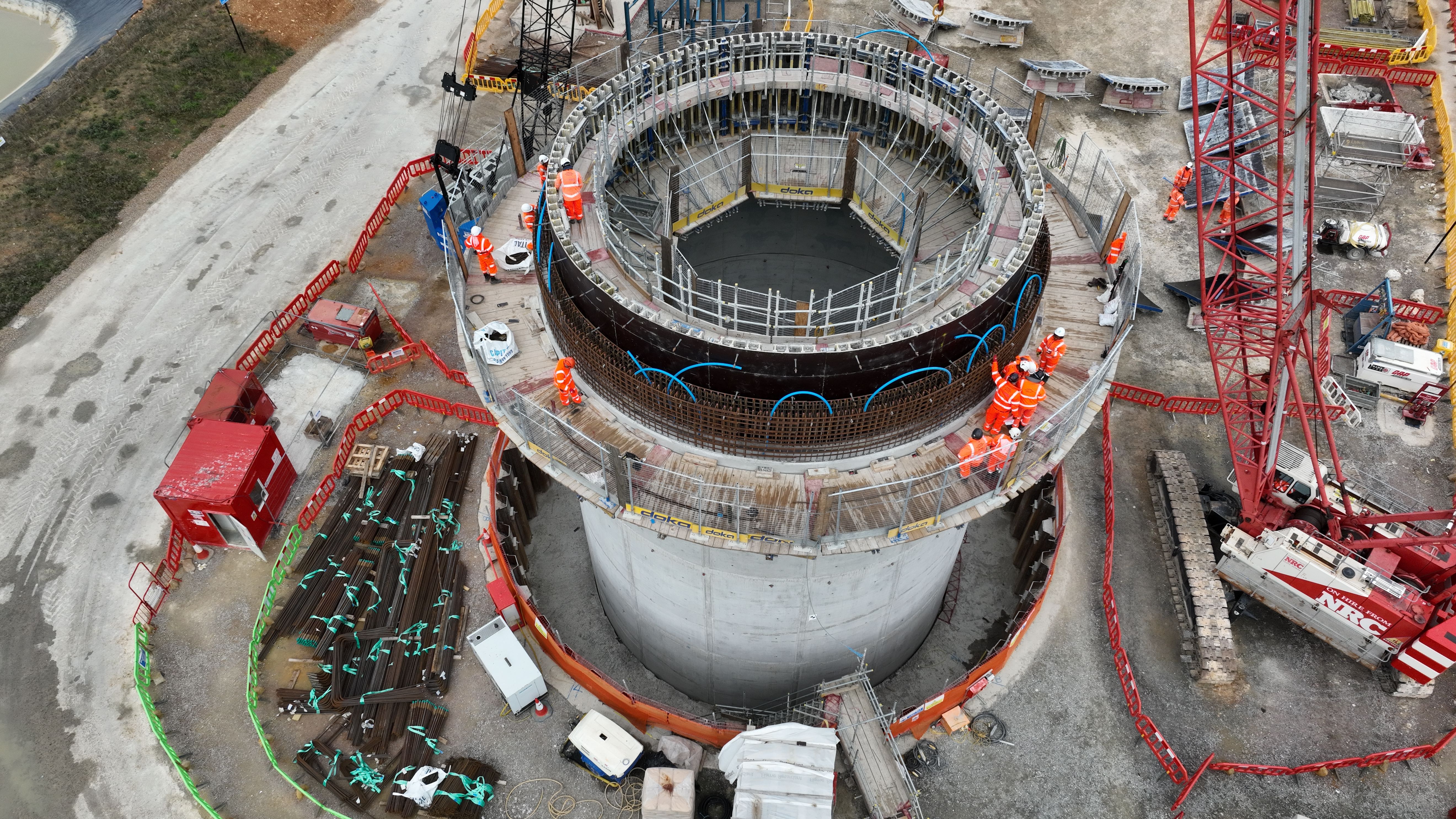 An aerial still of the Chesham Road shaft under construction, September 2022