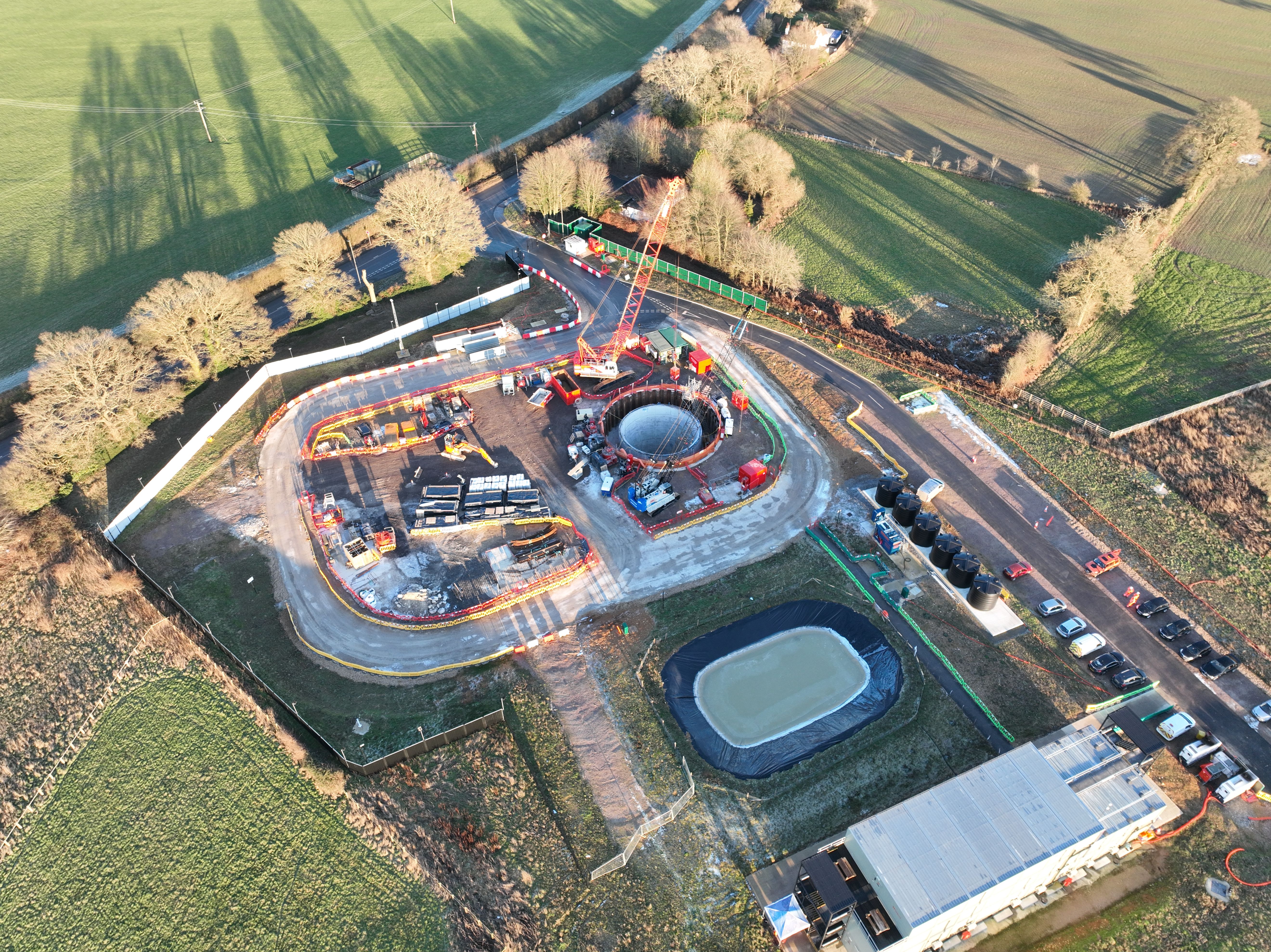 An aerial still of the Chesham Road shaft under construction, September 2022-2