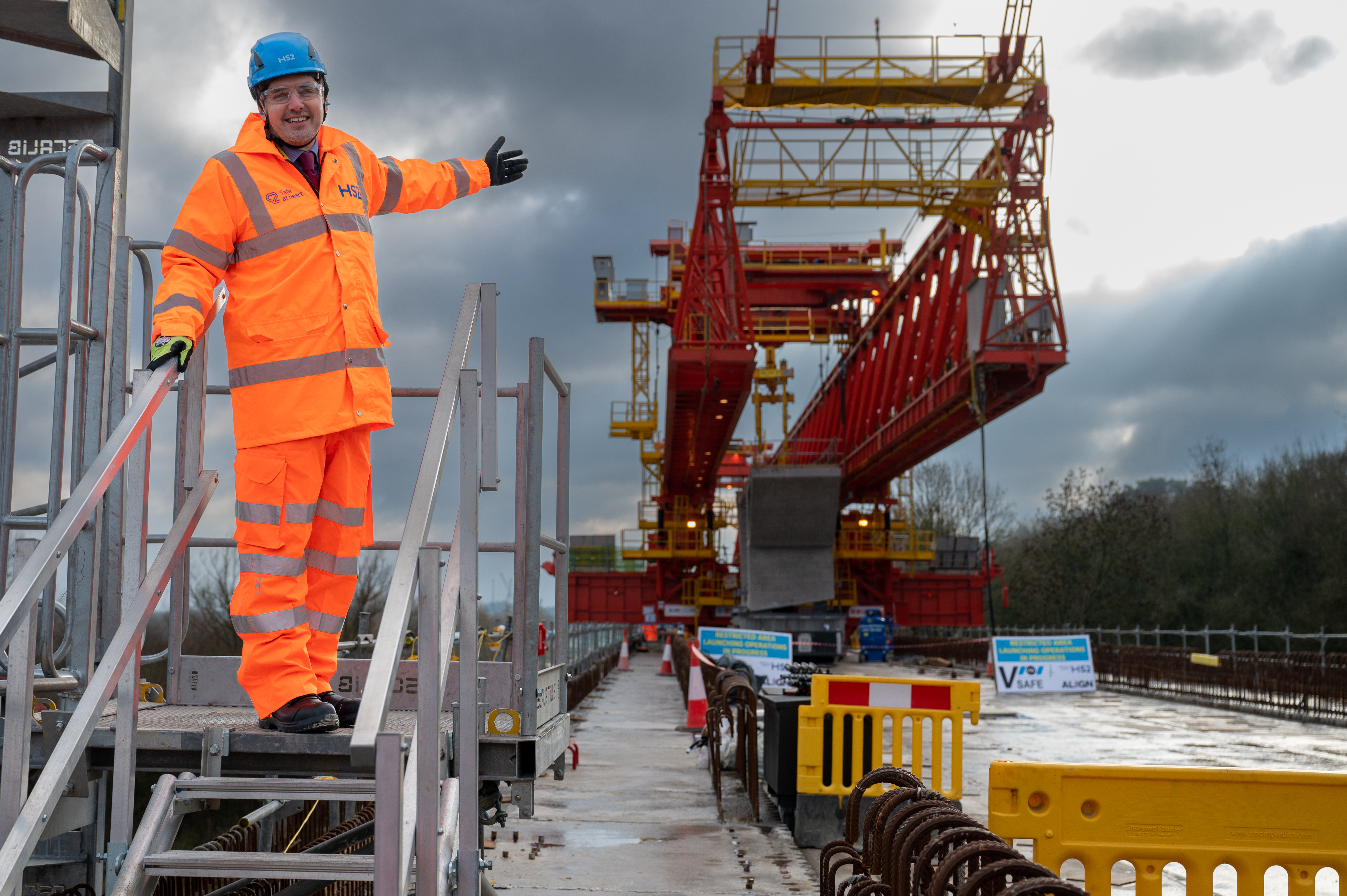 HS2 minister, Huw Merriman, walks on top of the high speed railway’s first and longest viaduct