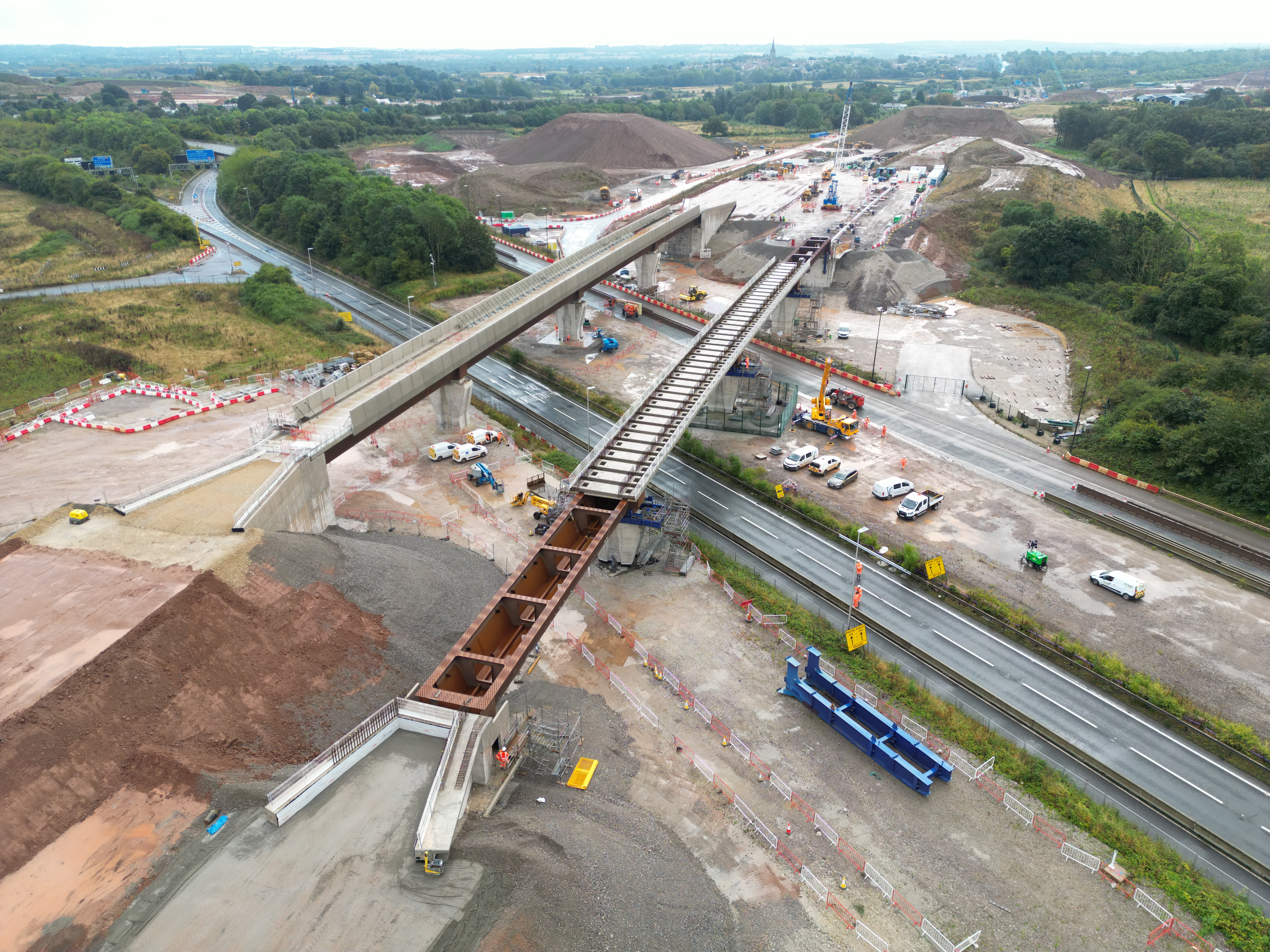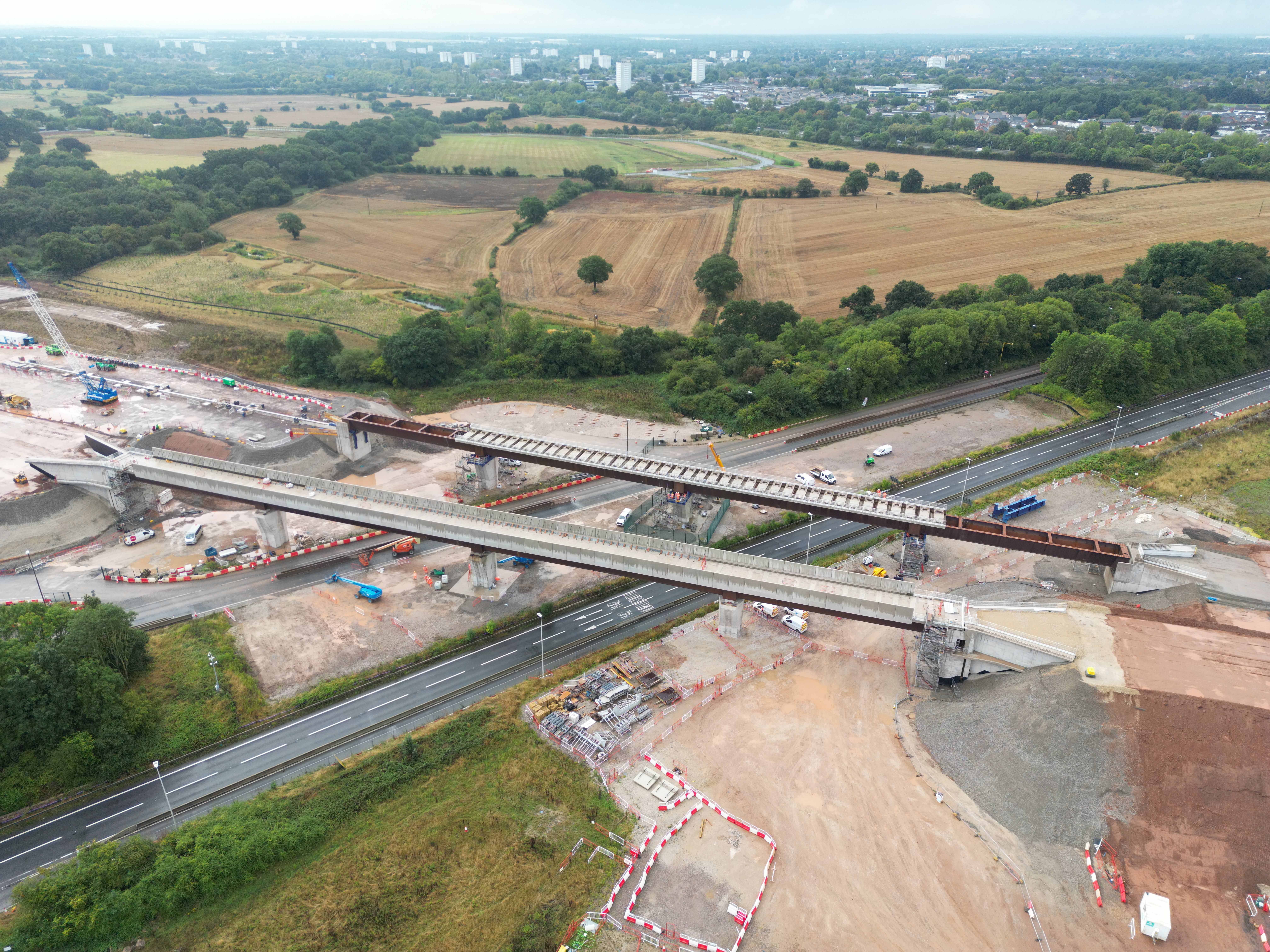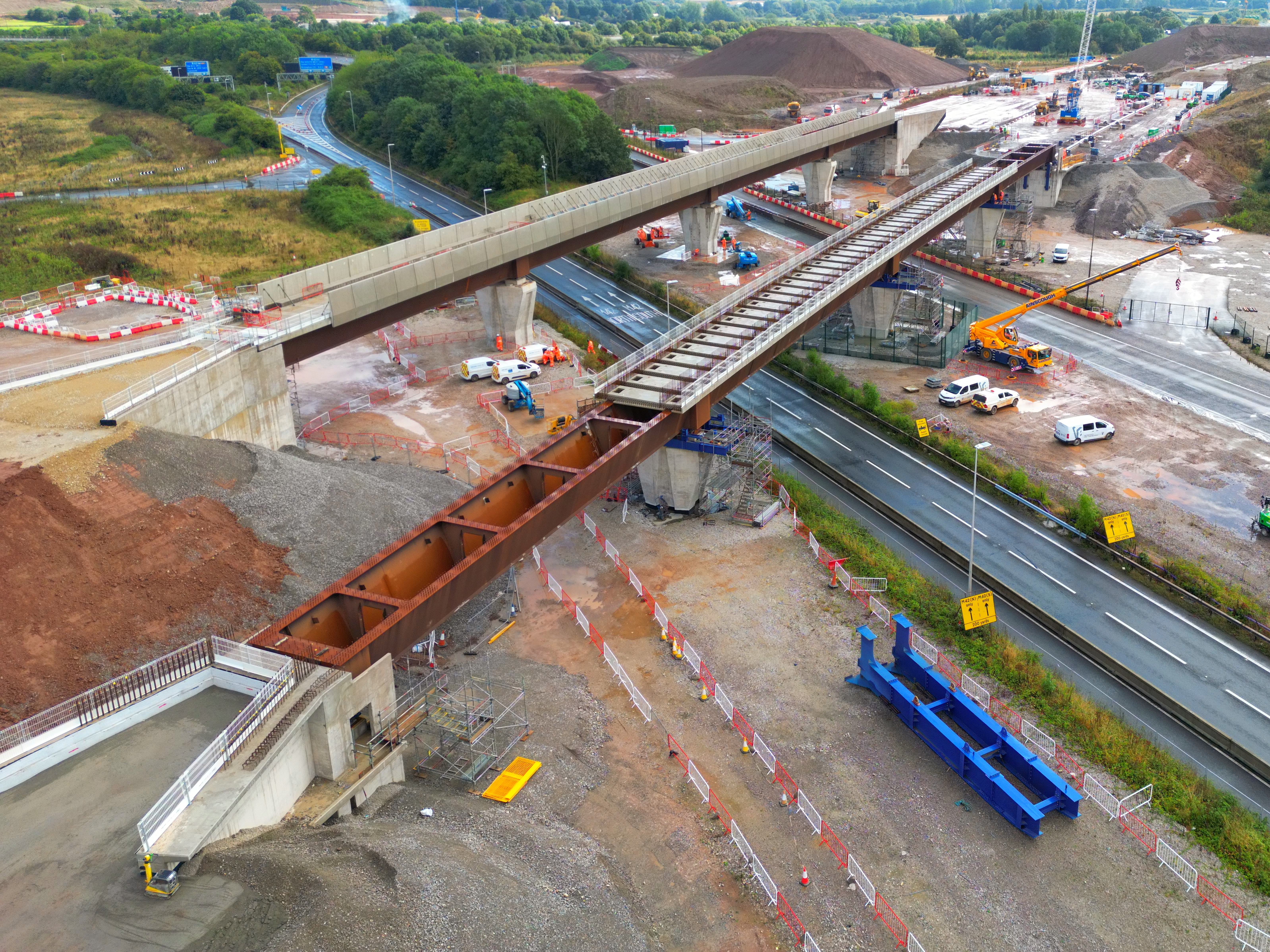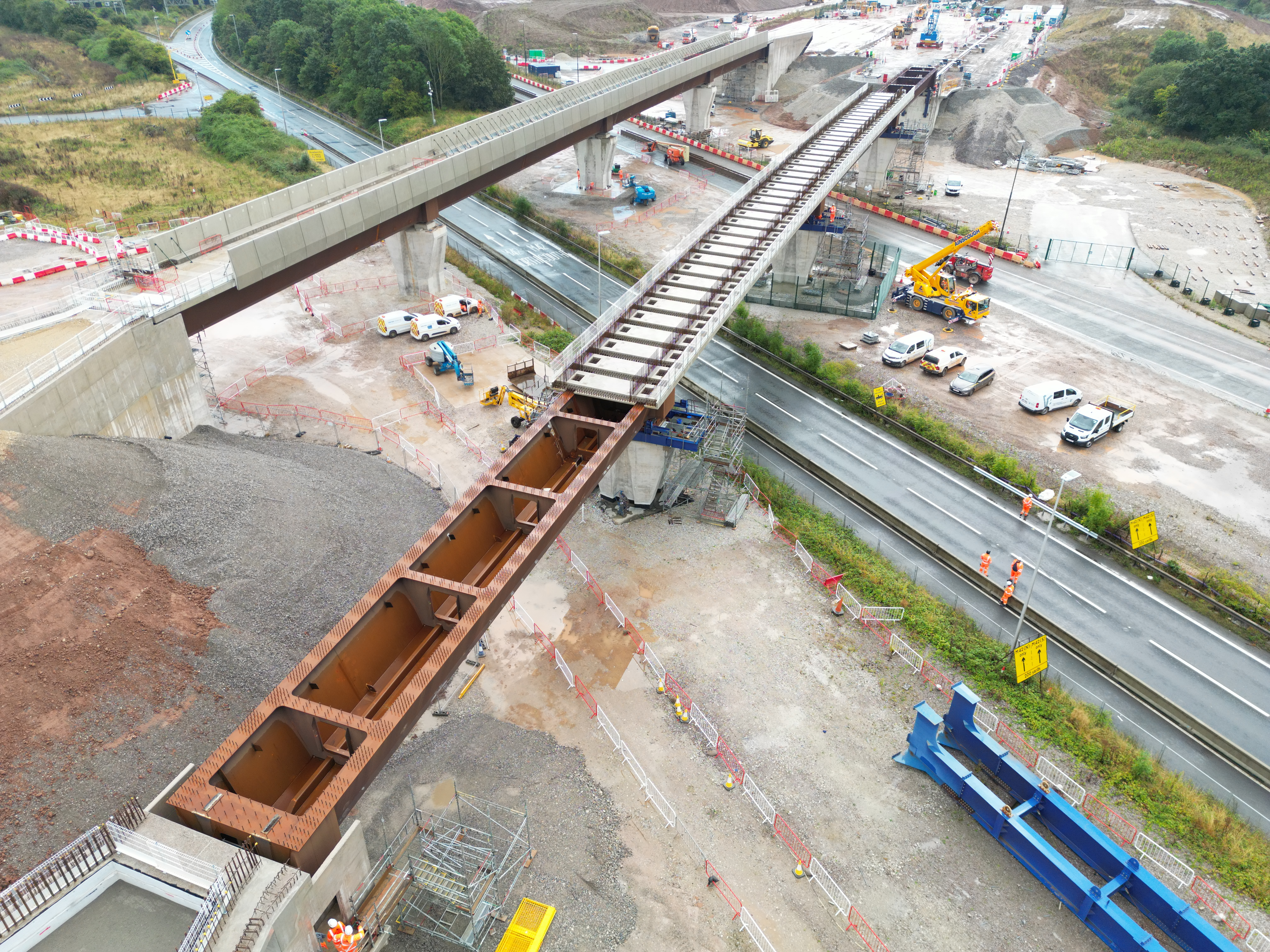 The 1,100 tonne West Link Viaduct moved onto place next to the parallel East Link Viaduct over the M42/M6 links roads