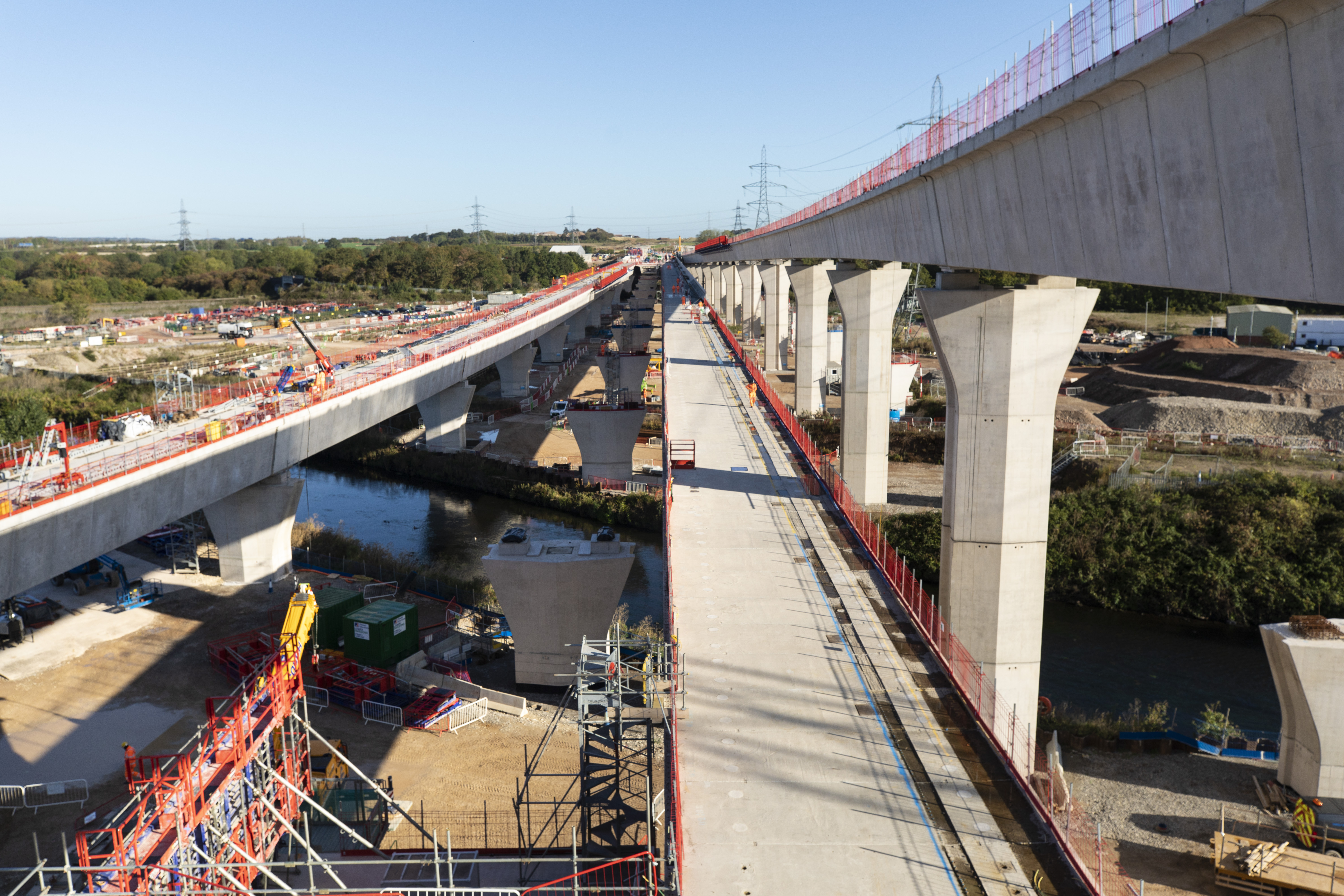 Construction of the River Tame West viaduct with Water Orton viaducts on either side Sept 2025