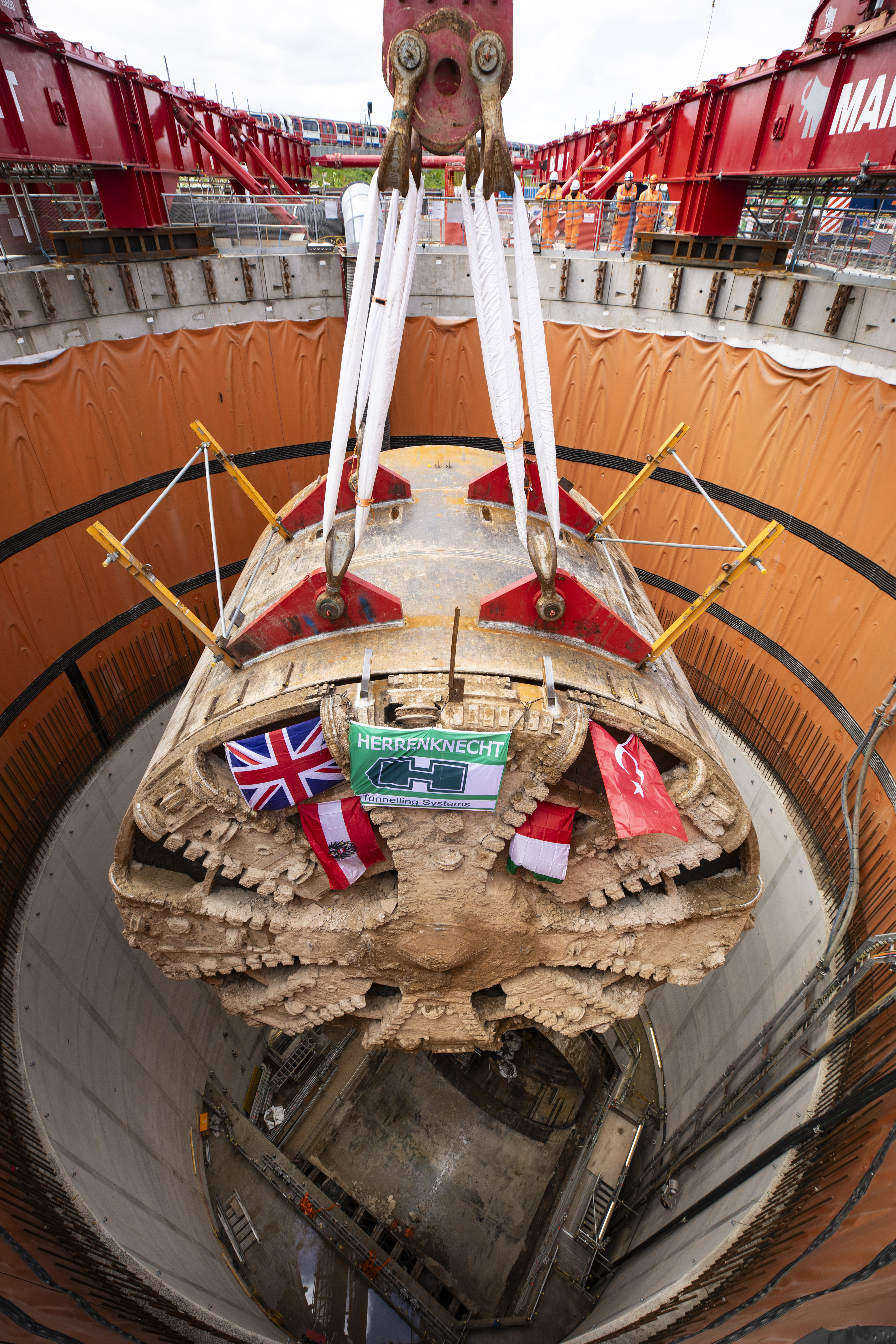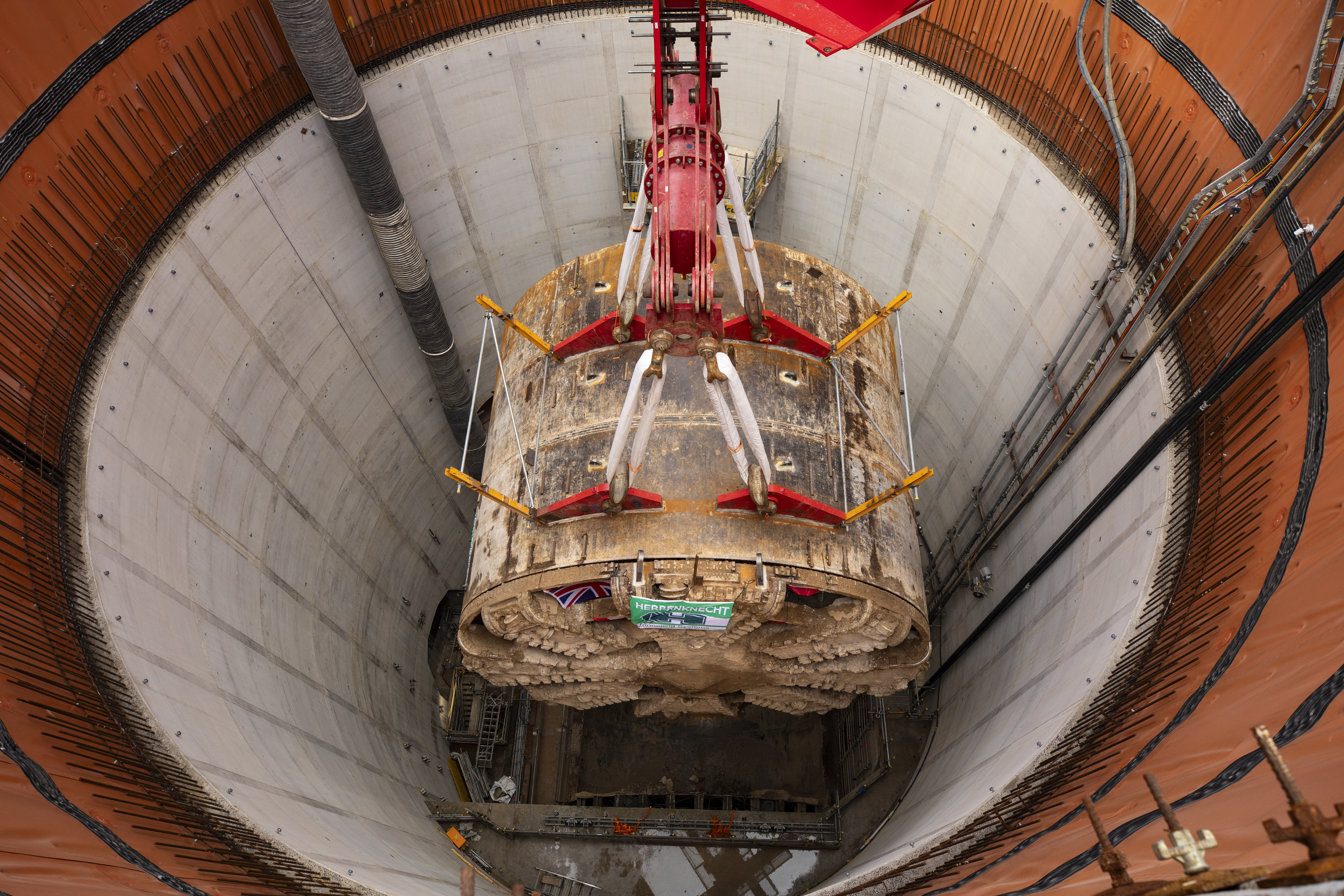 TBM Caroline lifted from Green Park Way shaft after completing journey under the capital