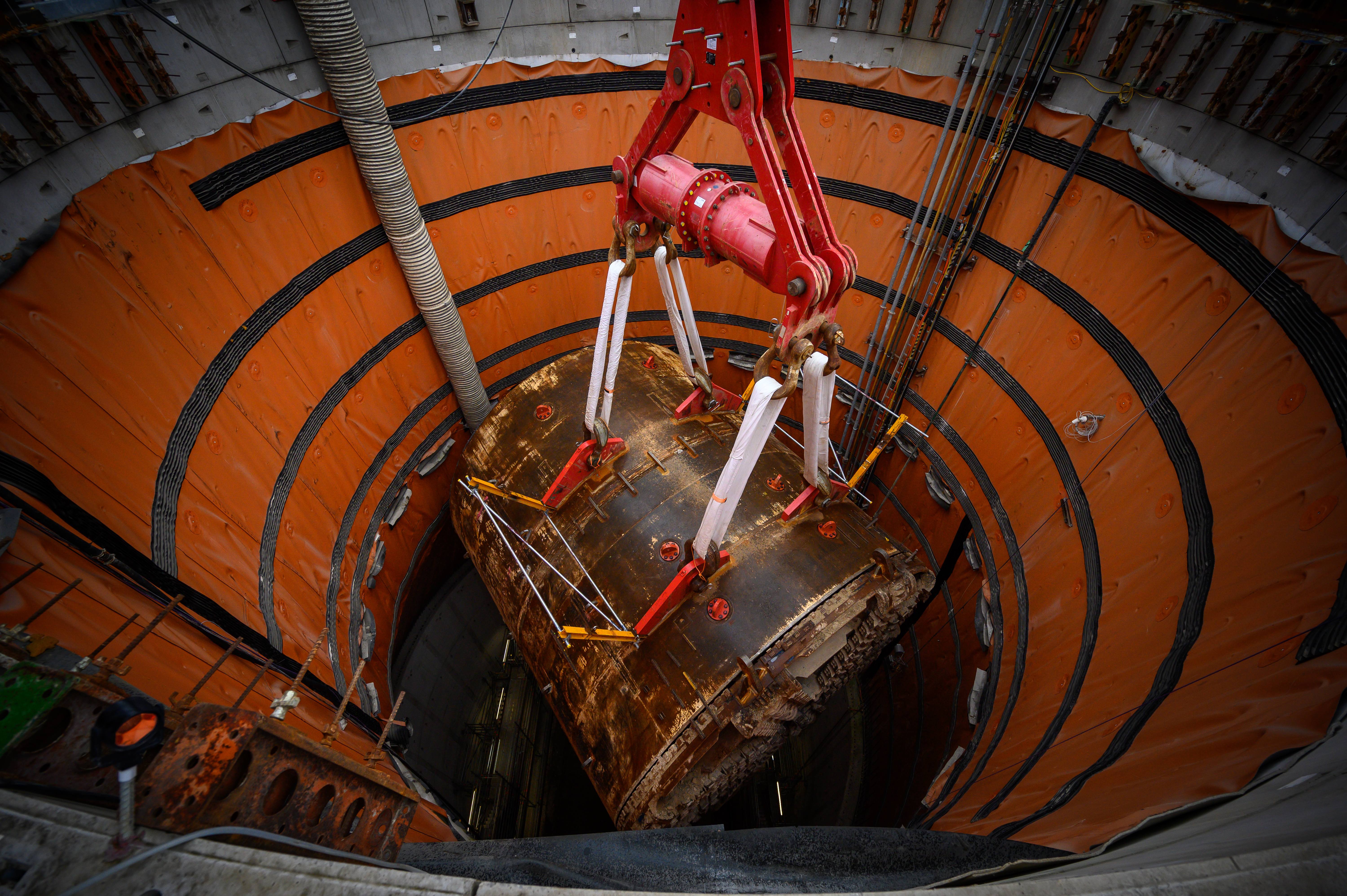 TBM Emily lifted at Green Park Way tunnel shaft 26th July 2025