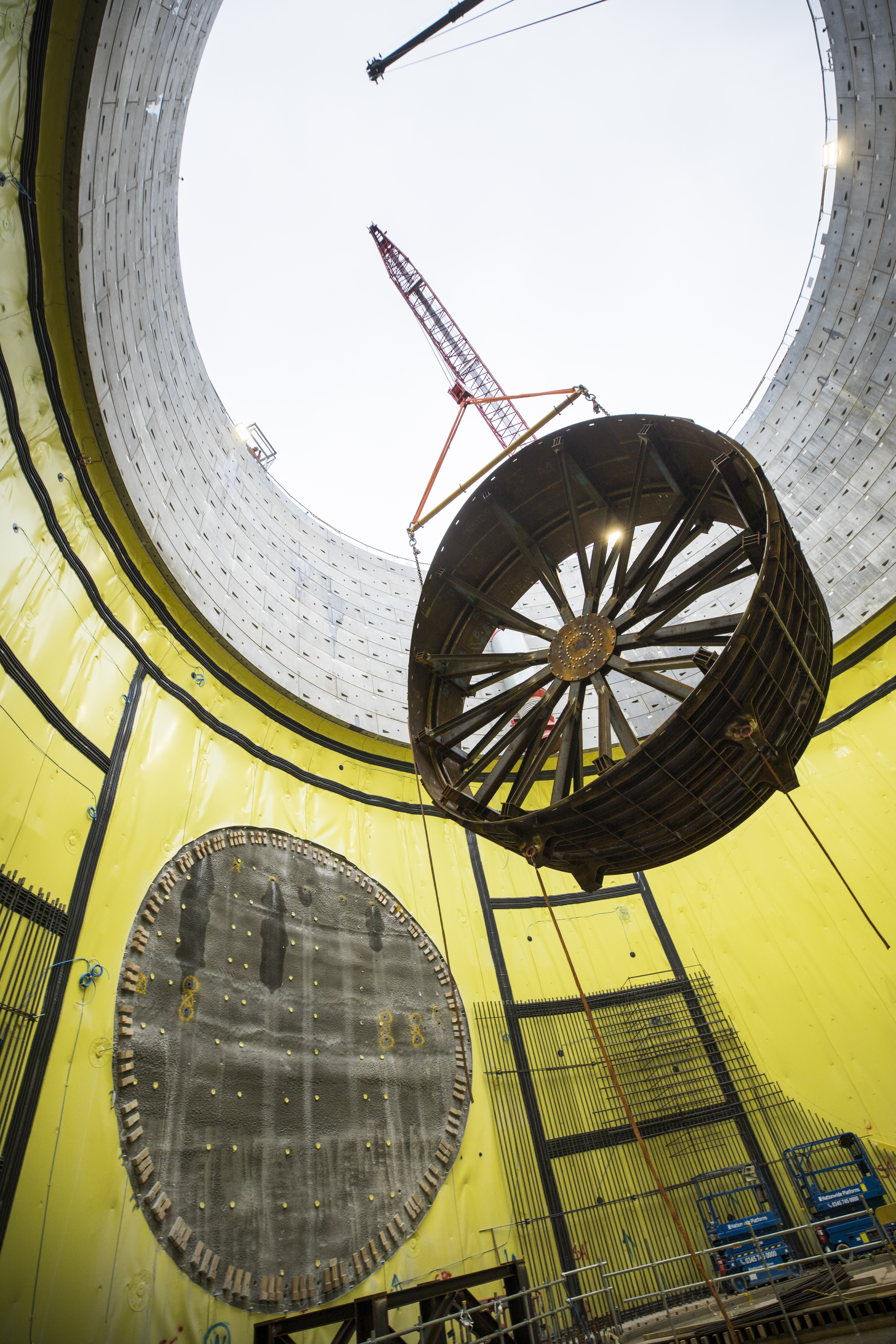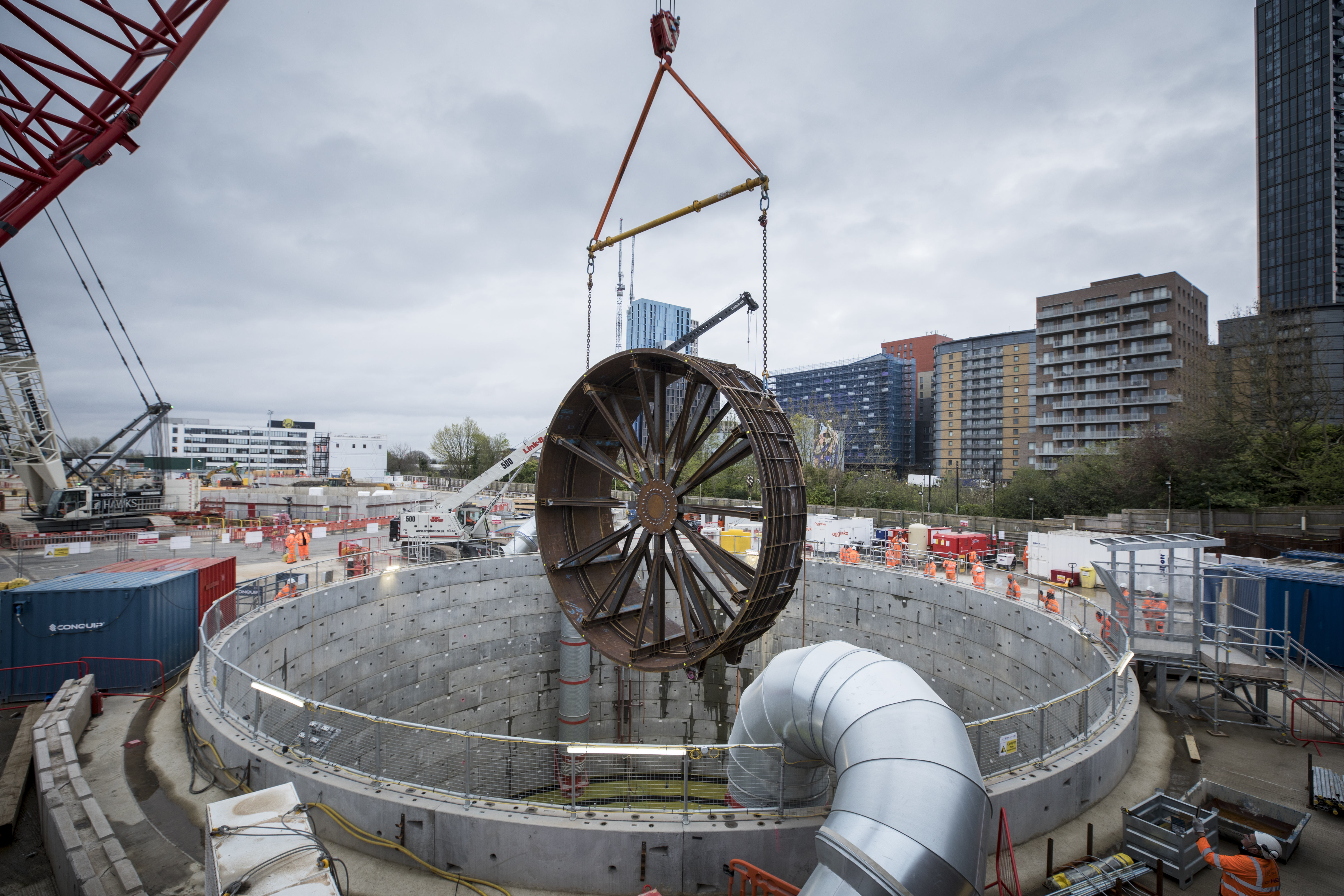 280-tonne crane lifting shutter down Victoria Road Crossover Box vent shaft.