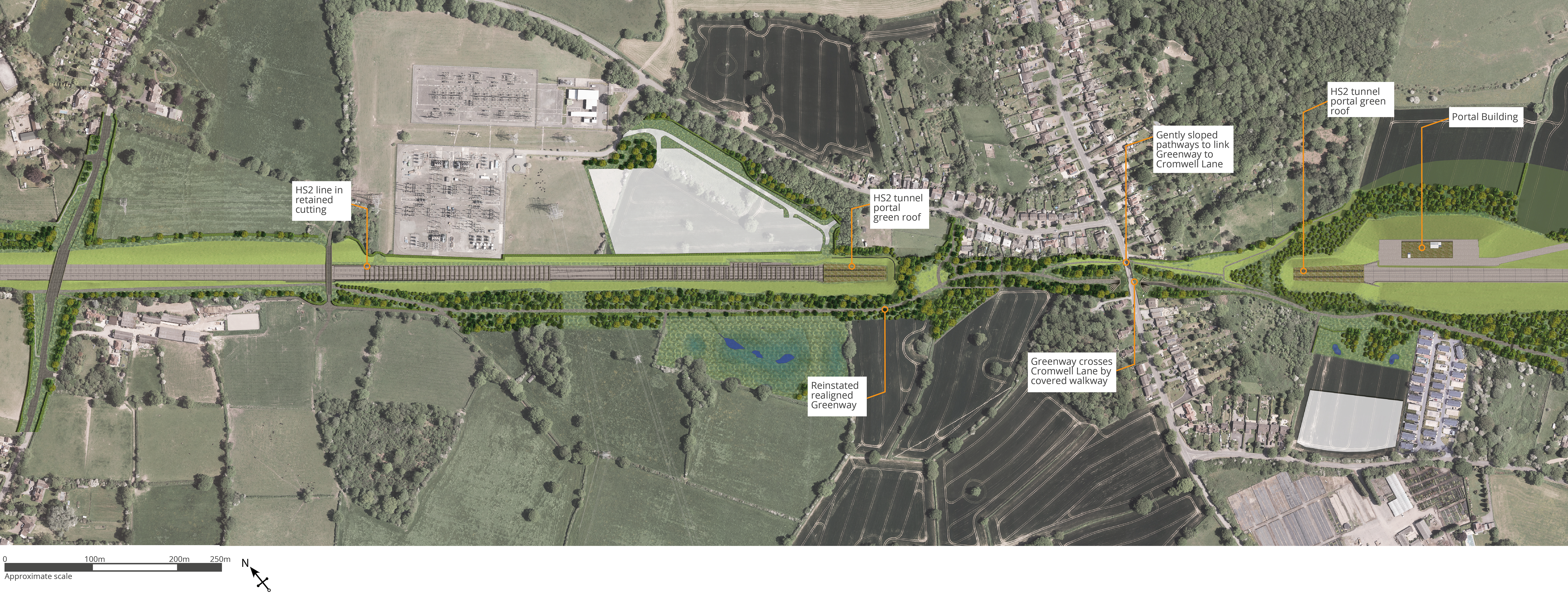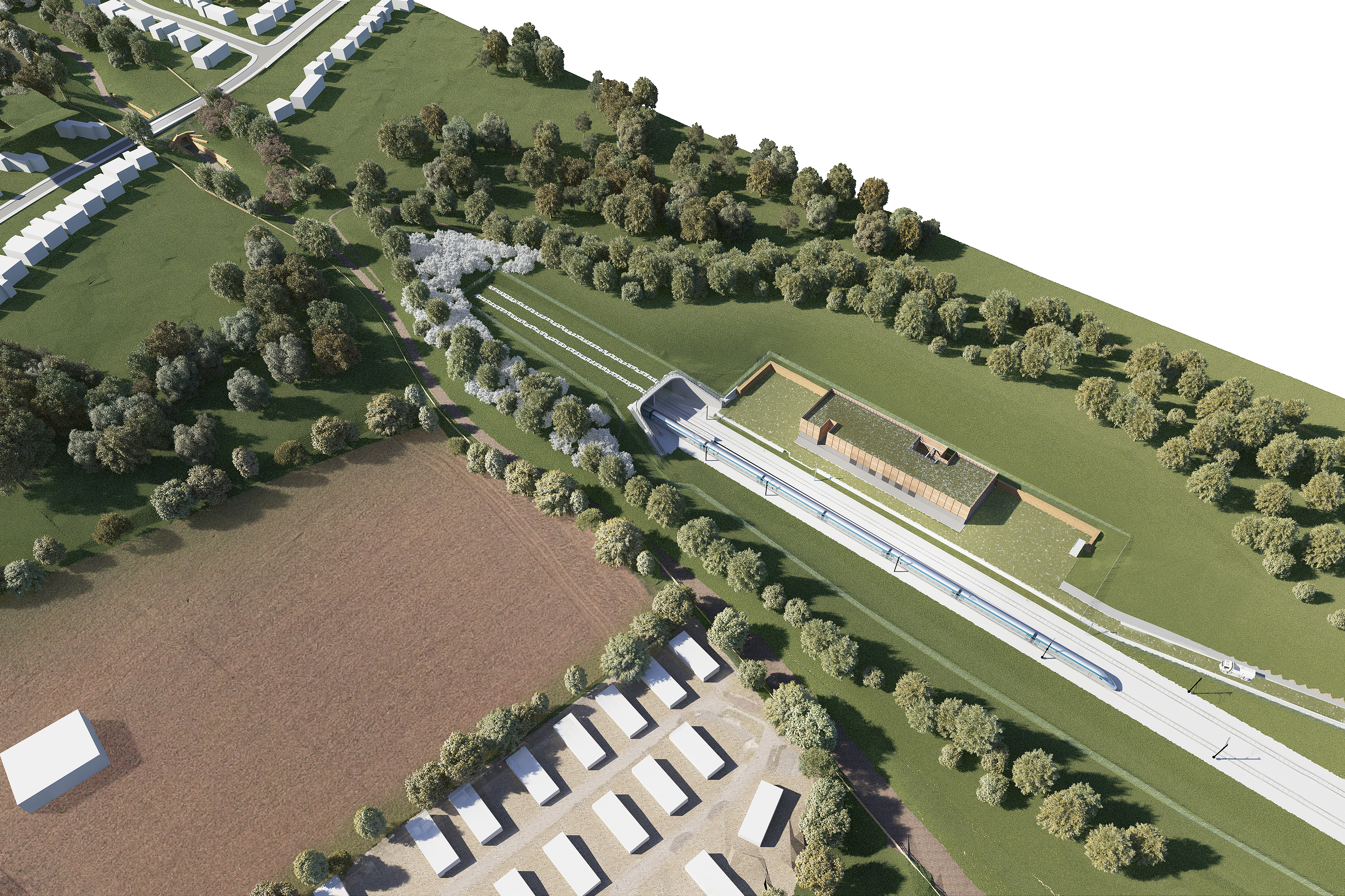 Bird's eye view of Burton Green green tunnel south portal