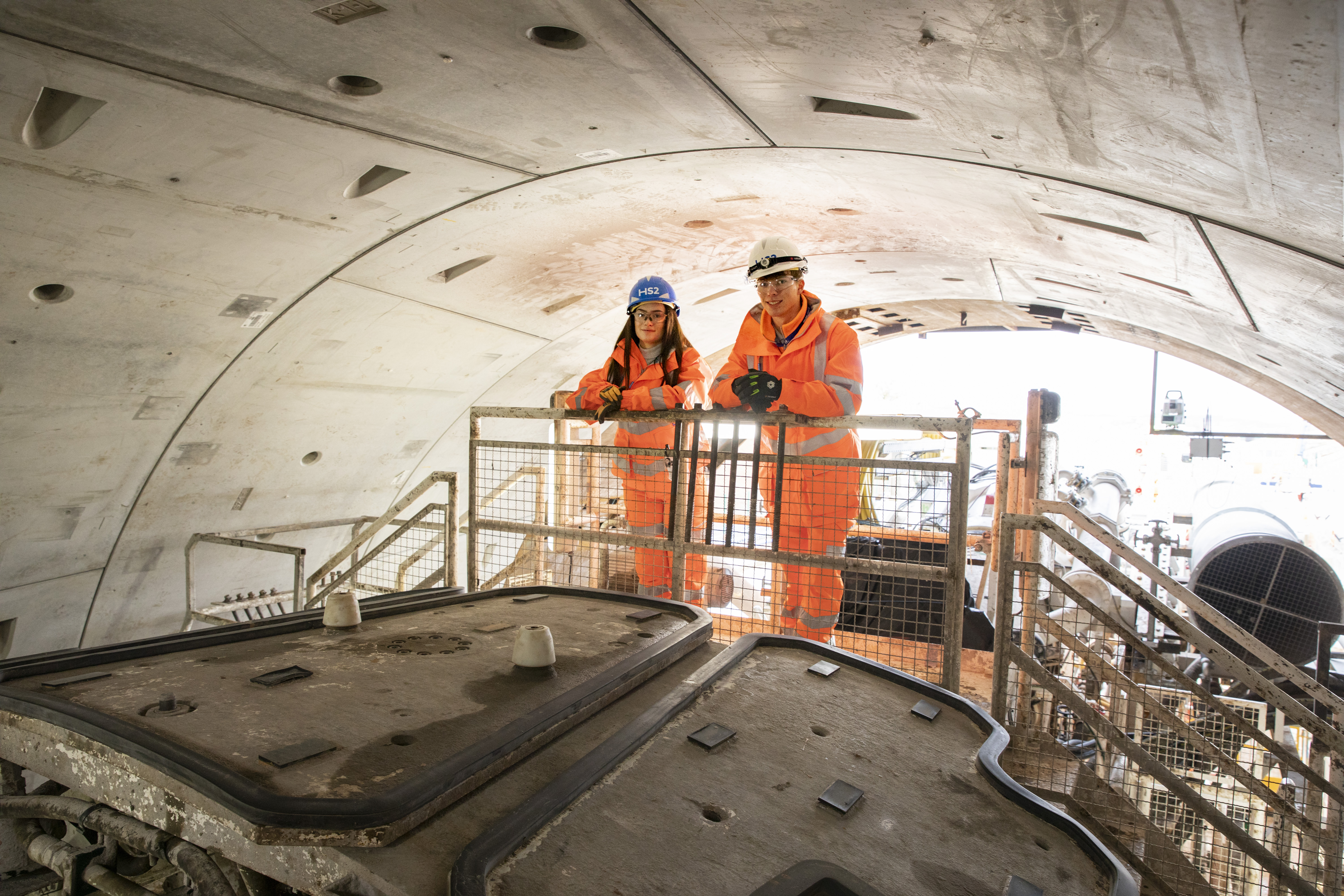 HS2 apprentices Leah Hickman and Jake Flood at Dorothy TBM's second launch