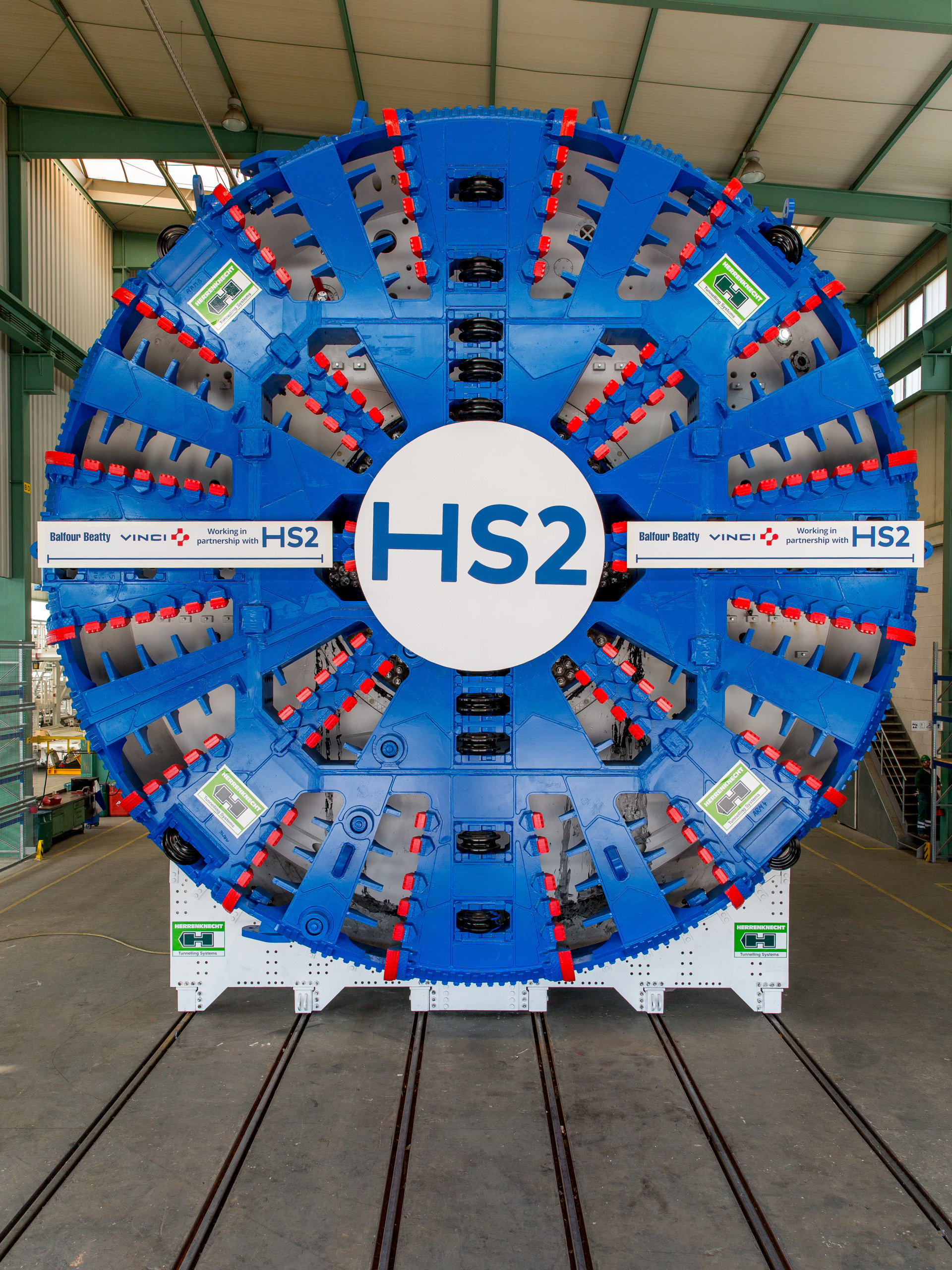 Workers standing on the Long Itchington Wood TBM cutterhead