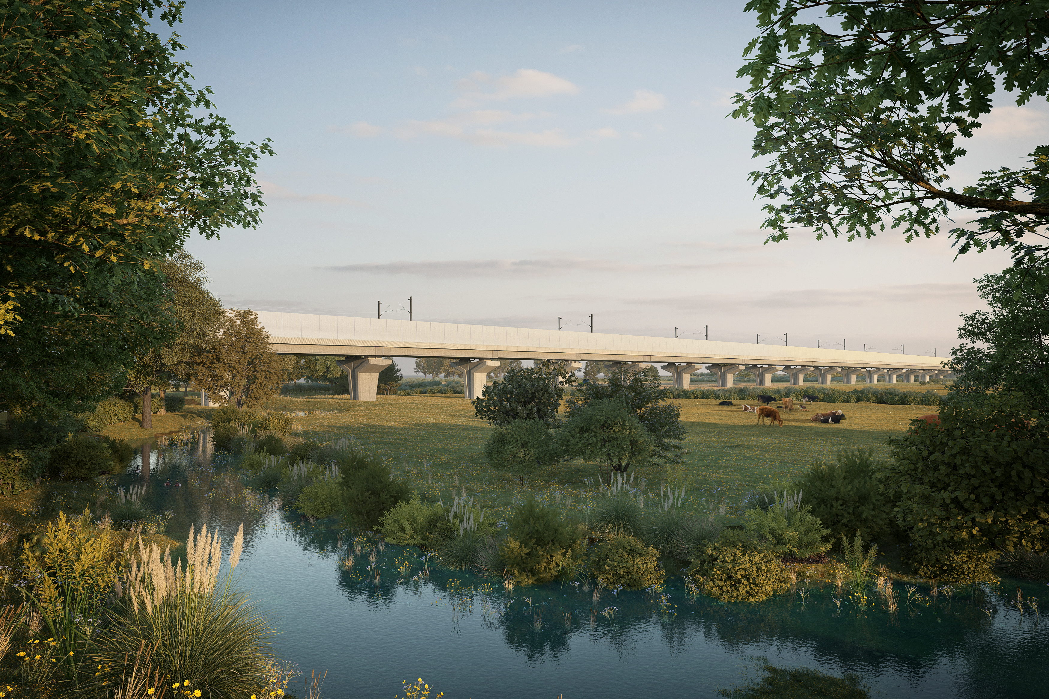 River Blythe Viaduct - view towards Diddington Lane abutment with the River Blythe in the foreground and Mouldings Green Farm in the background