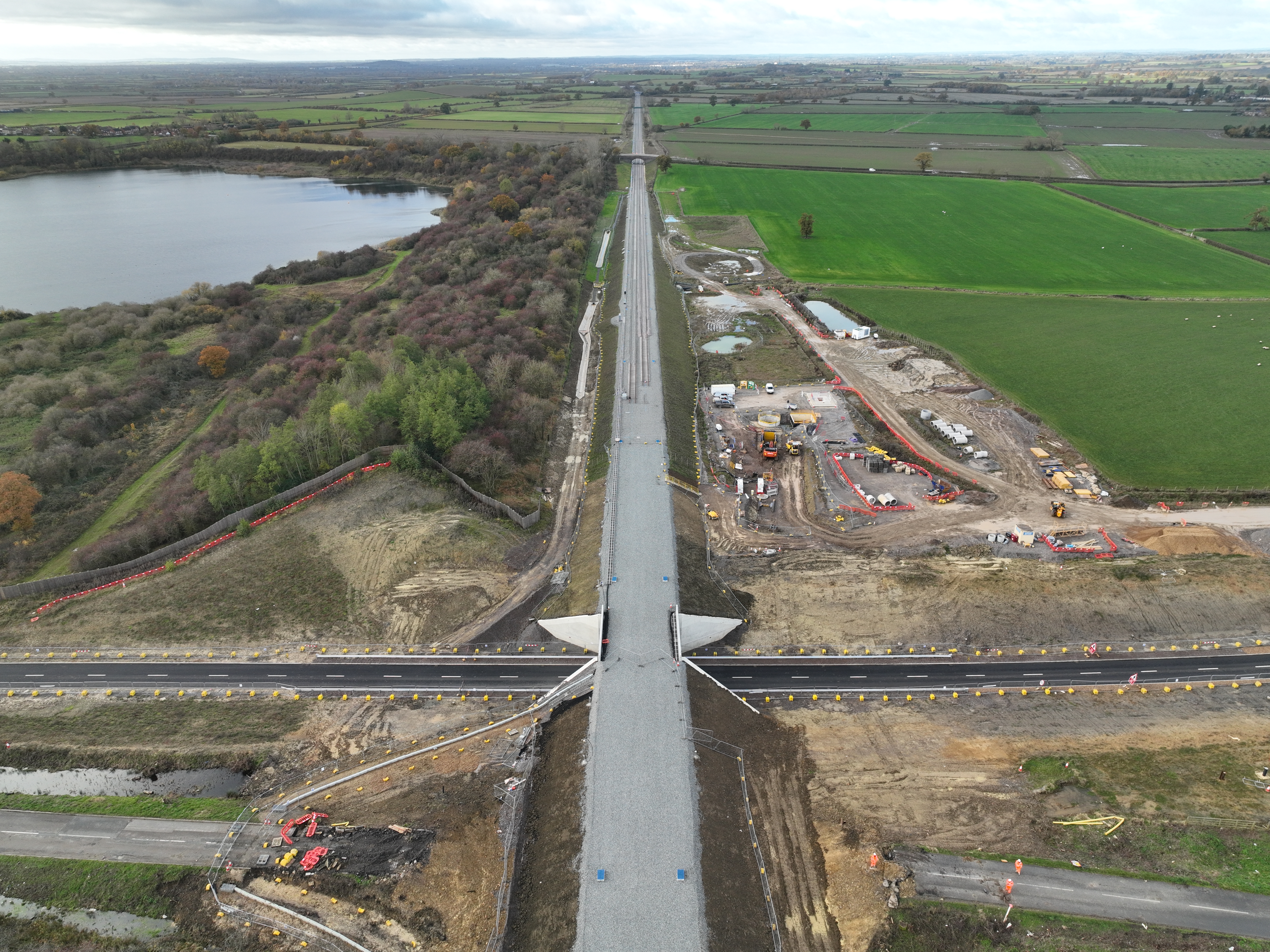 Image looking west along the earthworks for East West Rail delivered by HS2 Nov 2023
