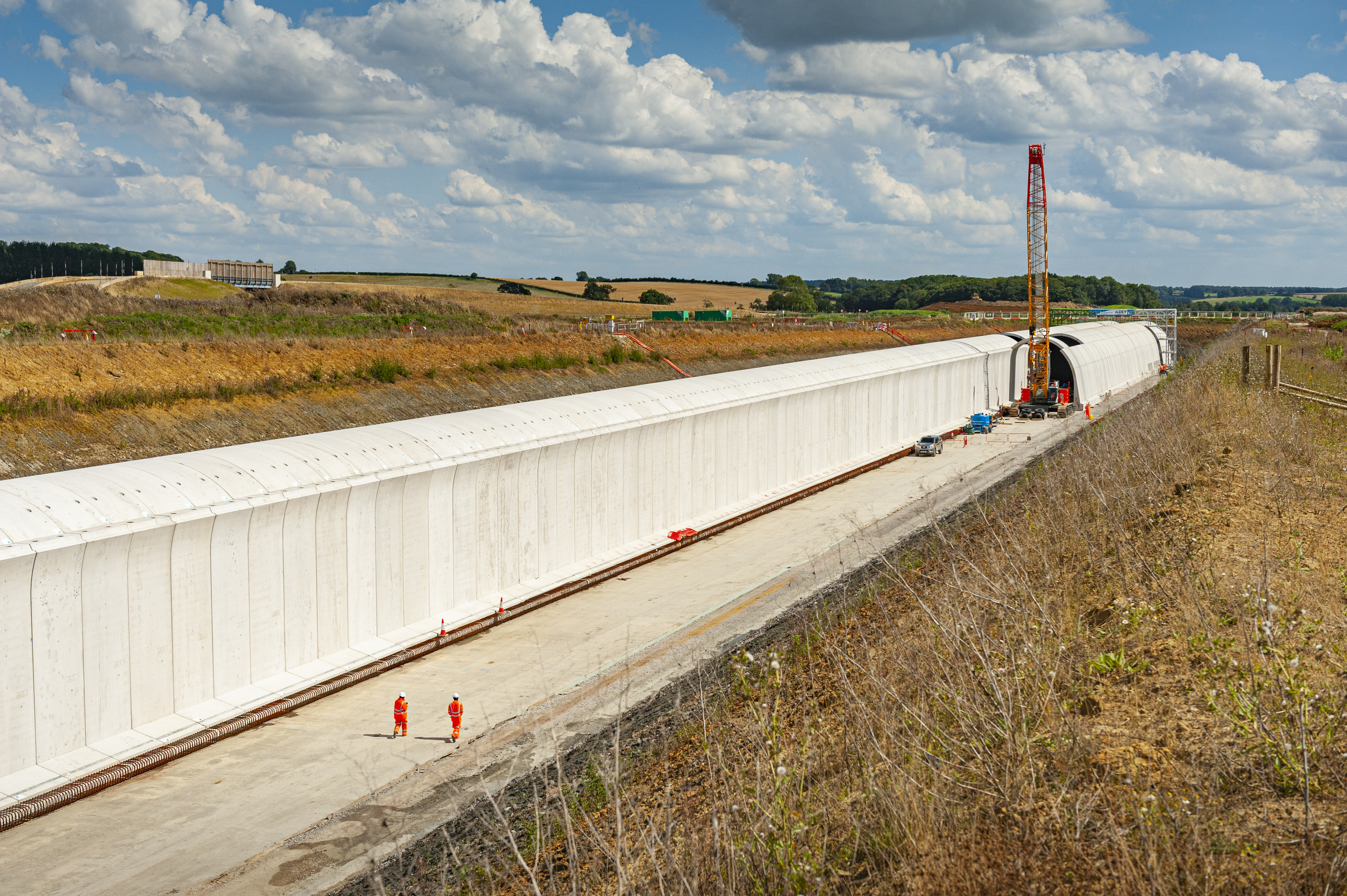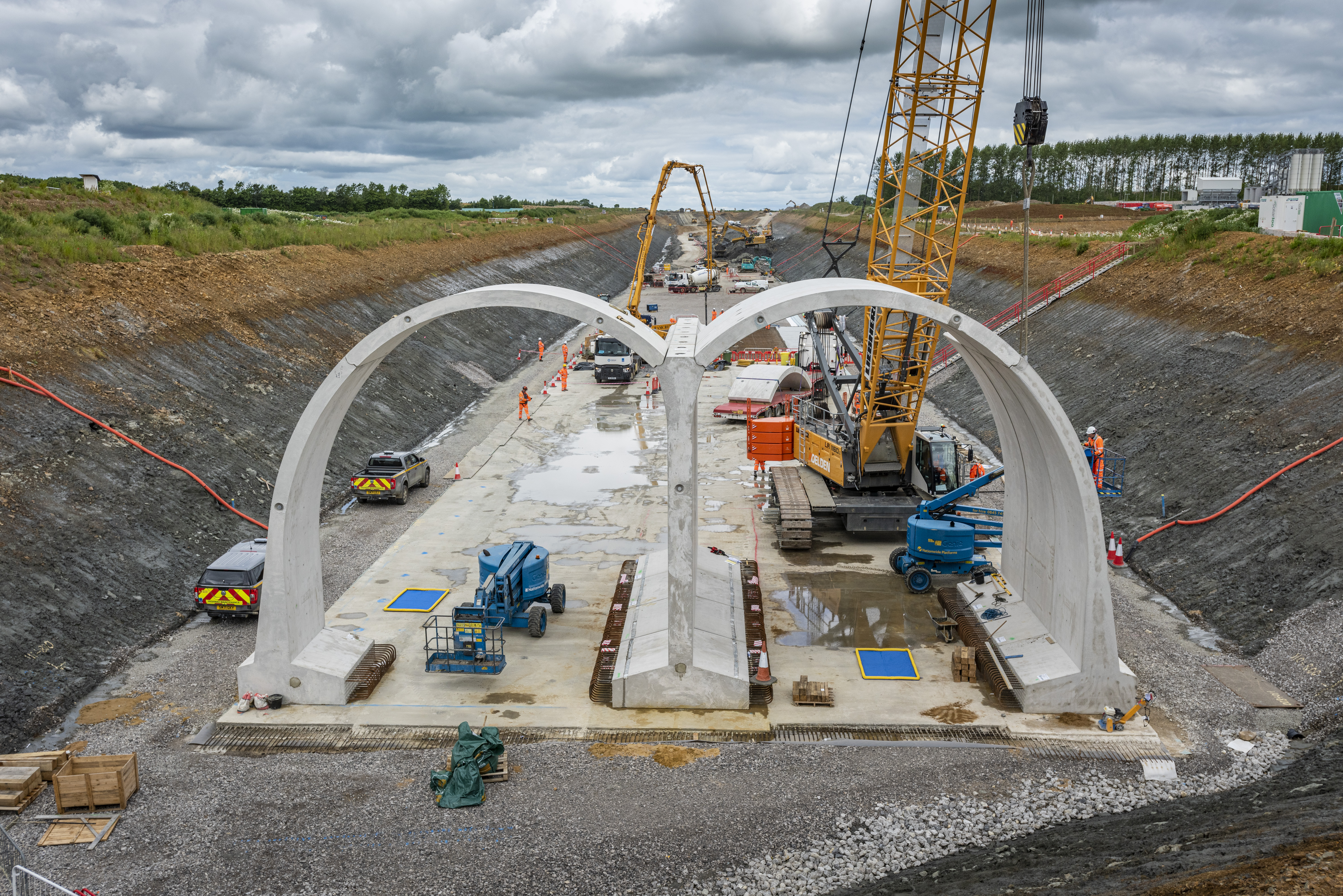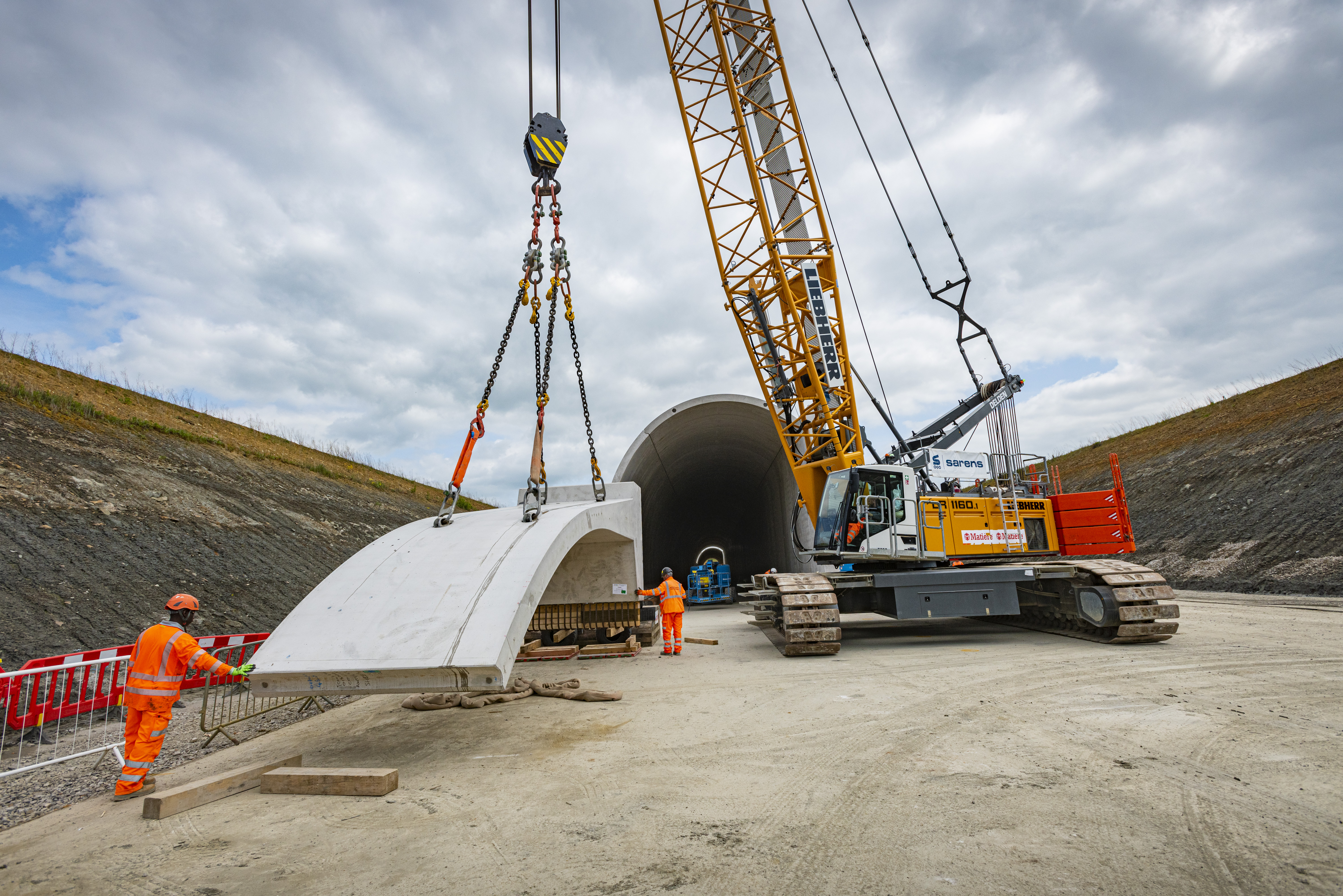 Construction starts on the Chipping Warden green tunnel with the first of five thousand giant concrete tunnel segments being installed.