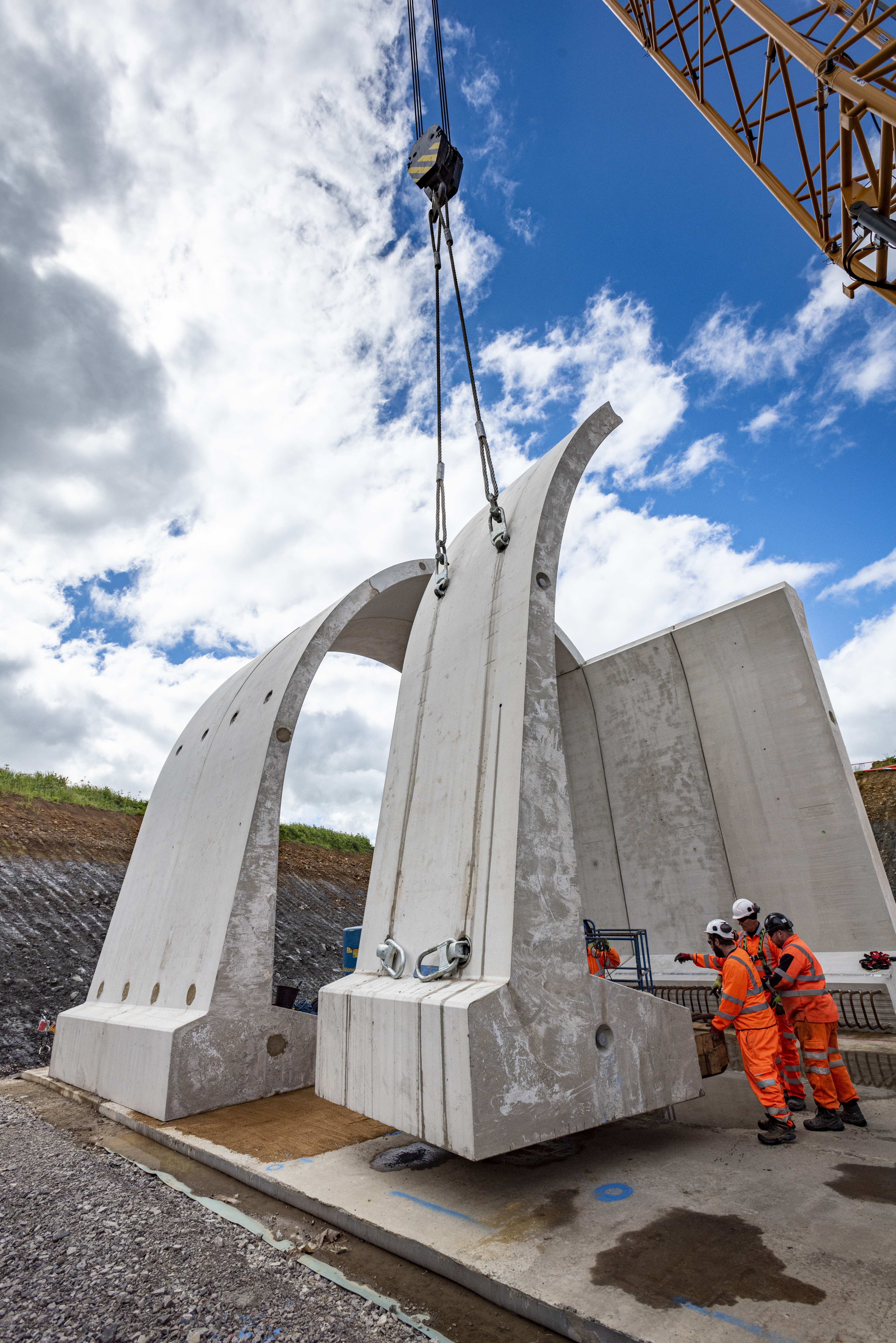 Some of the first green tunnel segments being lifted into position at Chipping Warden June 2022