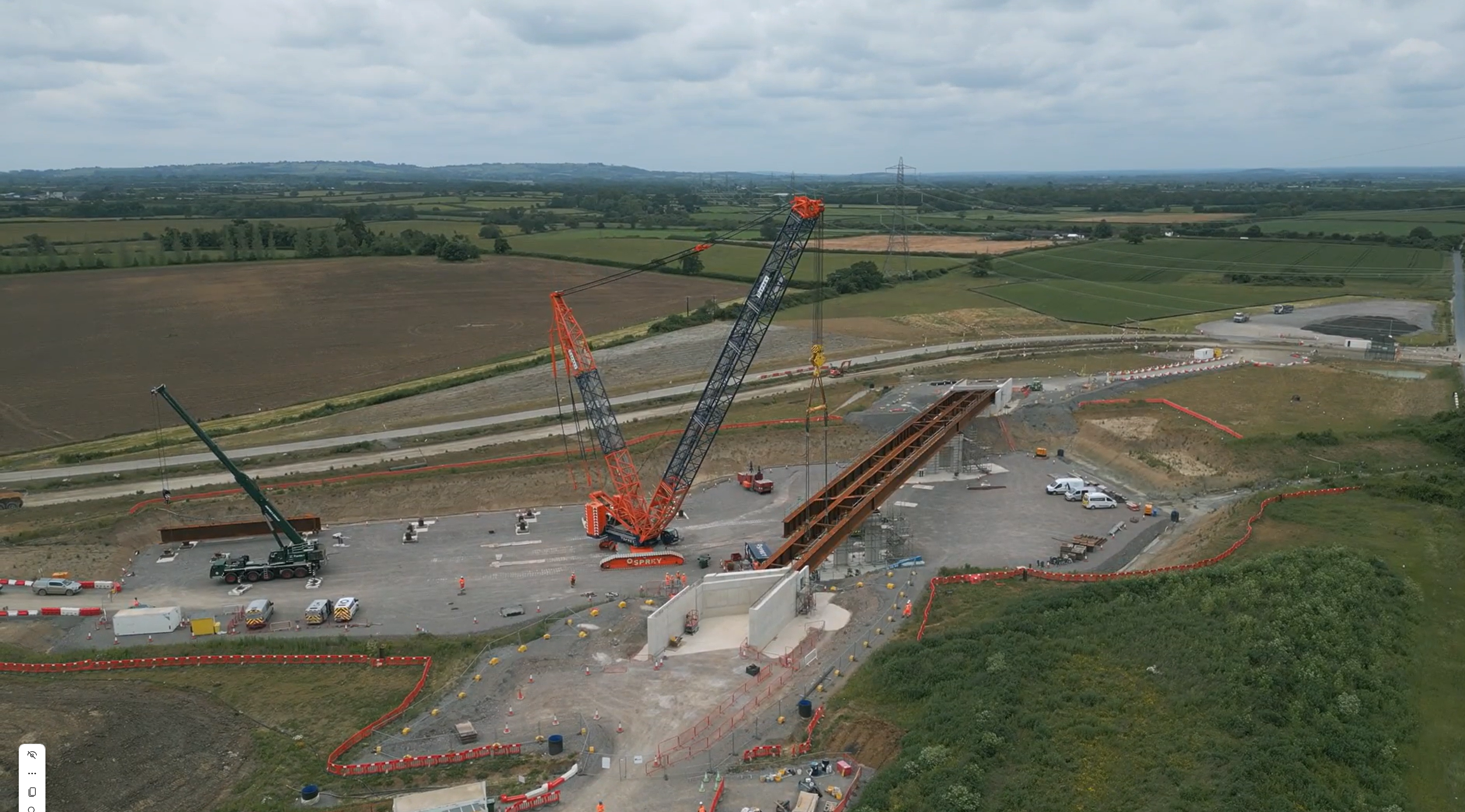 HS2's Edgcott Road overbridge site compound during the lifting of the main steel beams June 2024