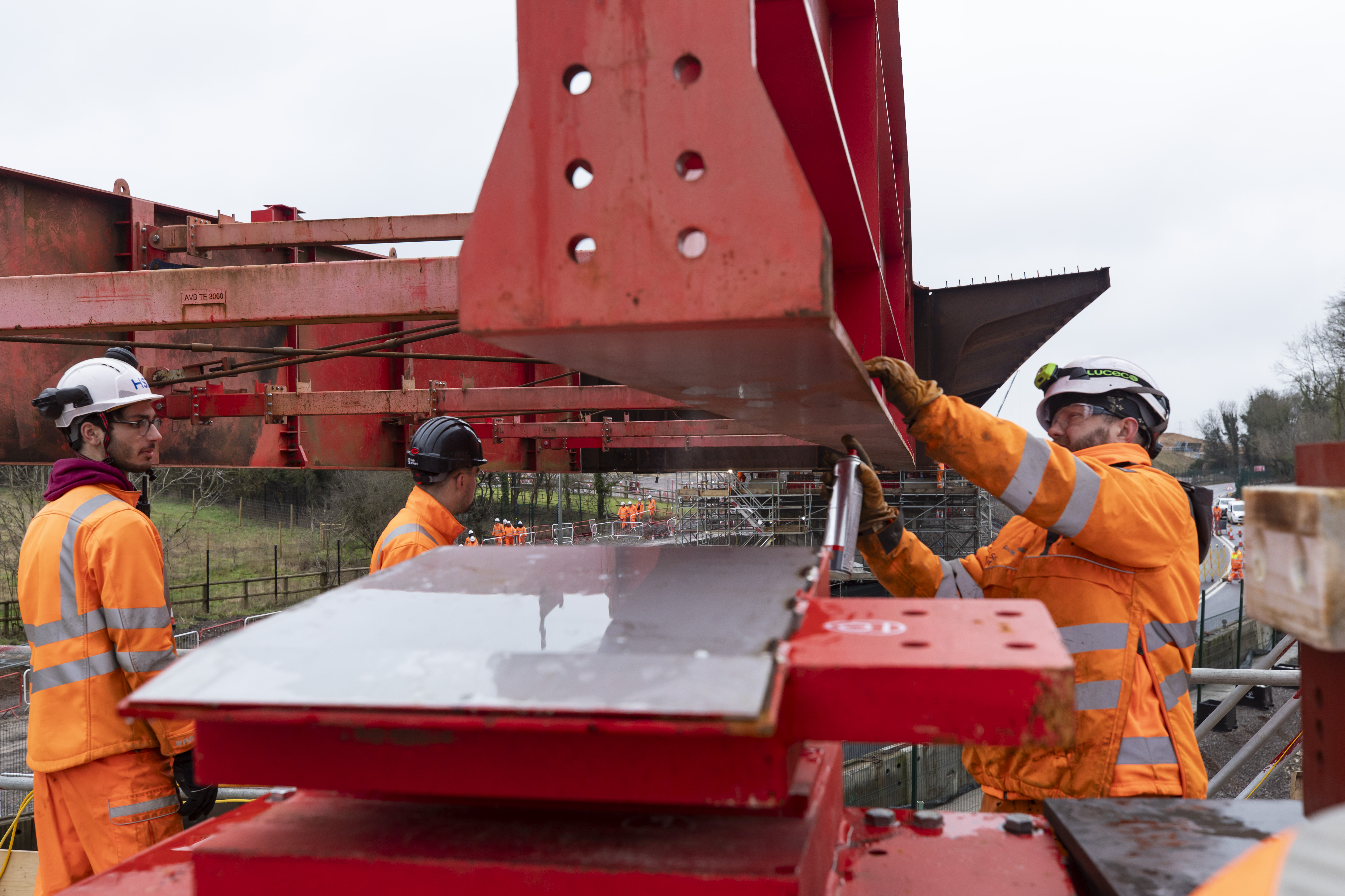 Workers sliding the Small Dean viaduct deck 31st Jan 2024