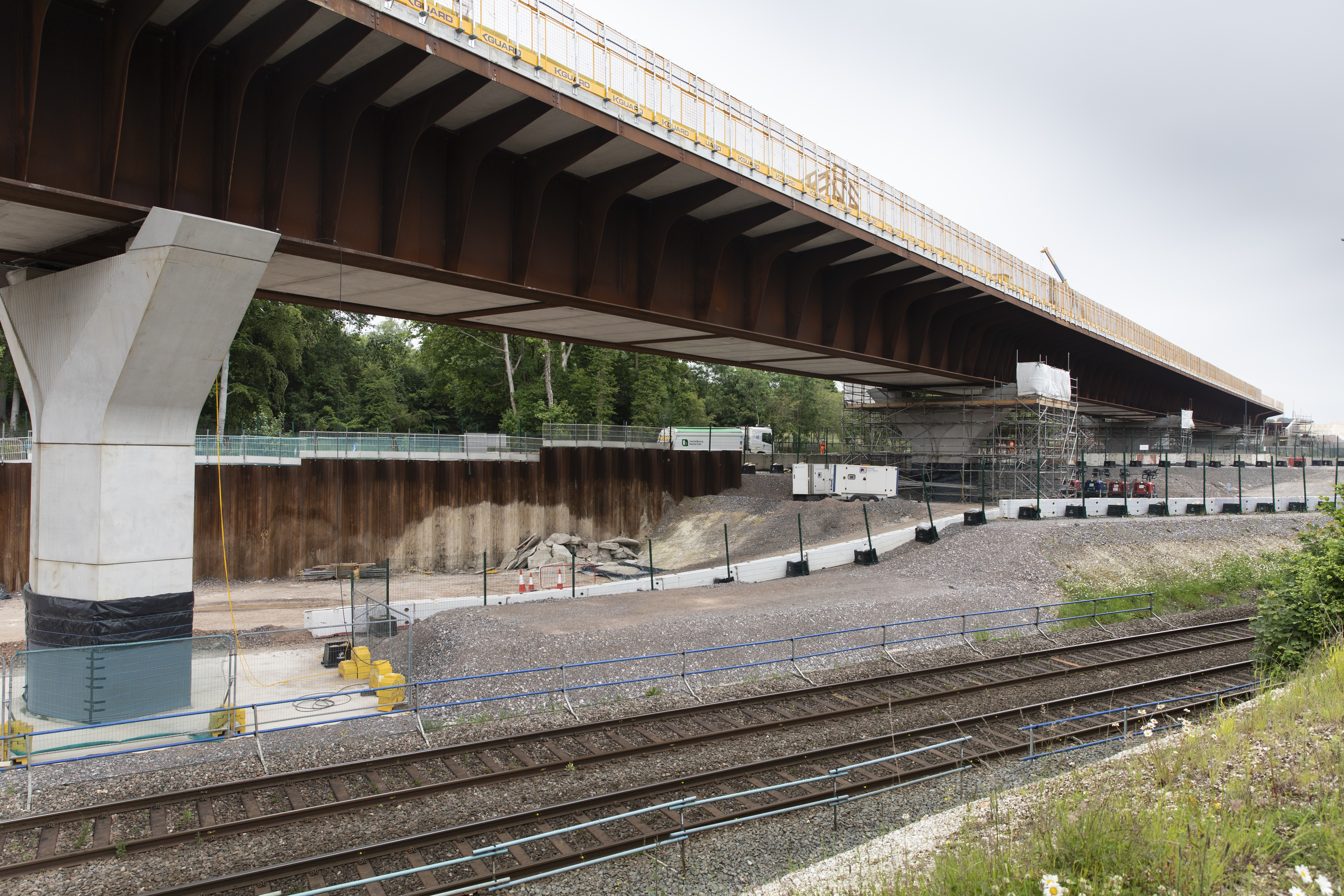 Small Dean Viaduct deck in position above the railway Feb 2025