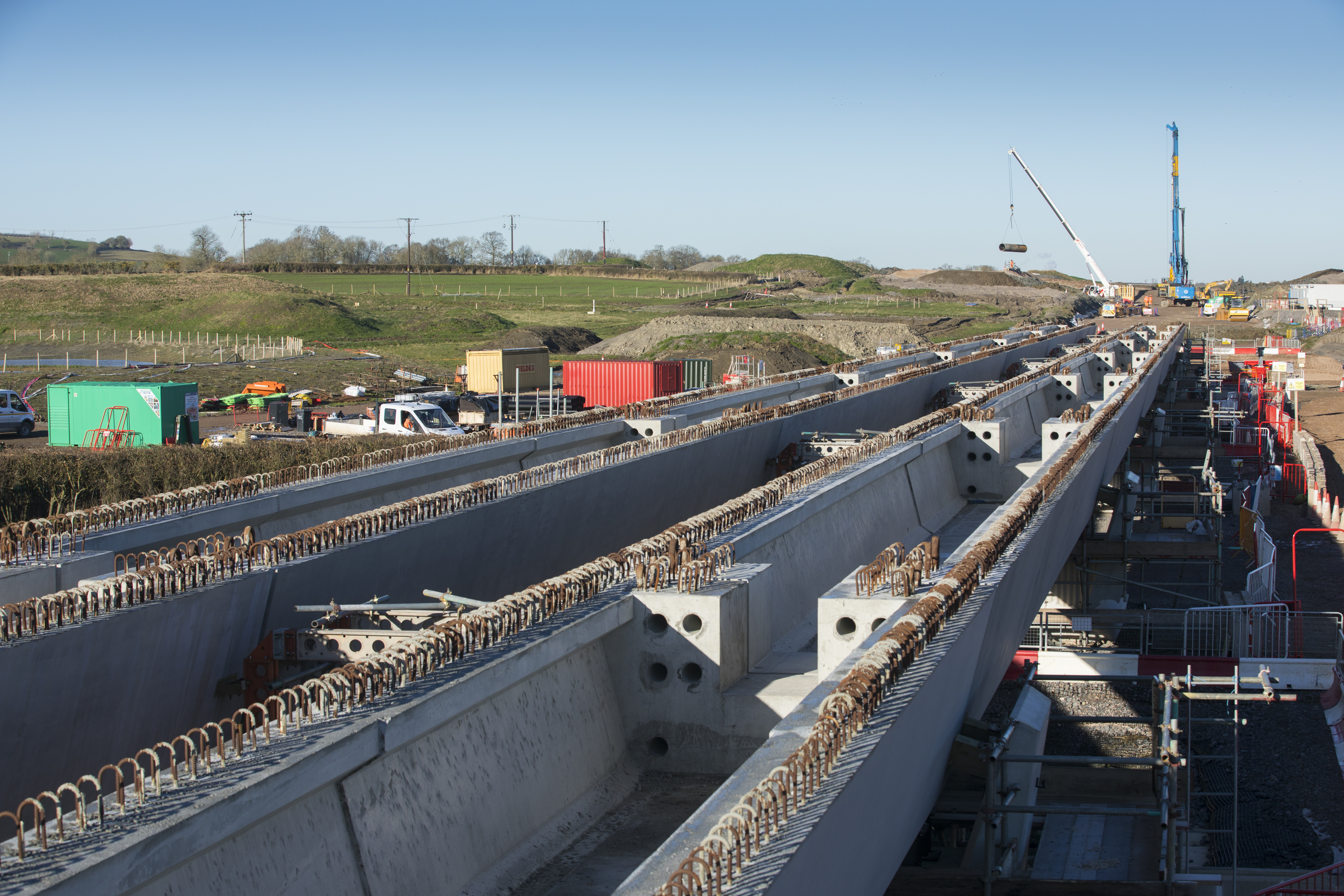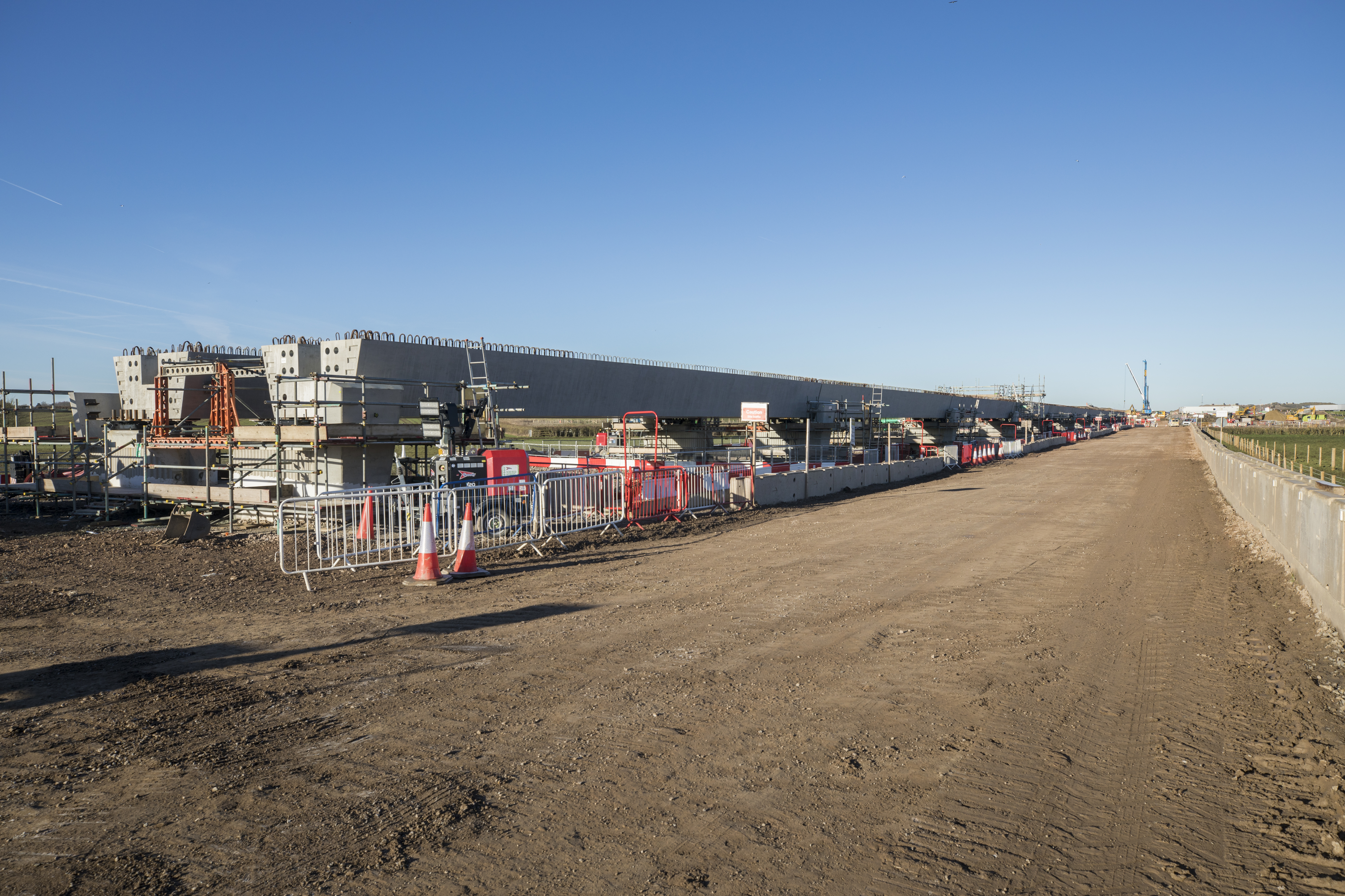 Thame Valley Viaduct beam installation seen from the adjacent haul road January 2024