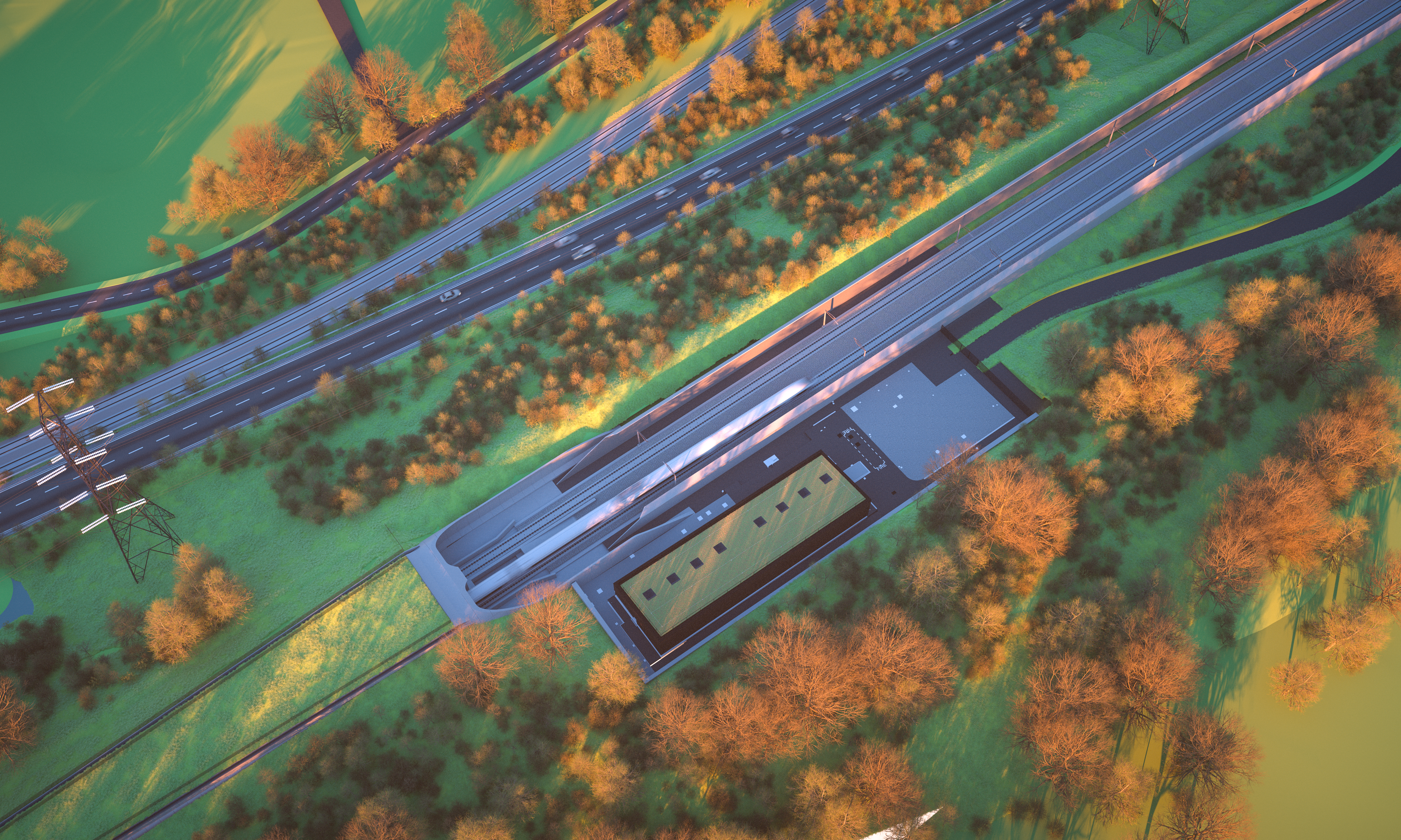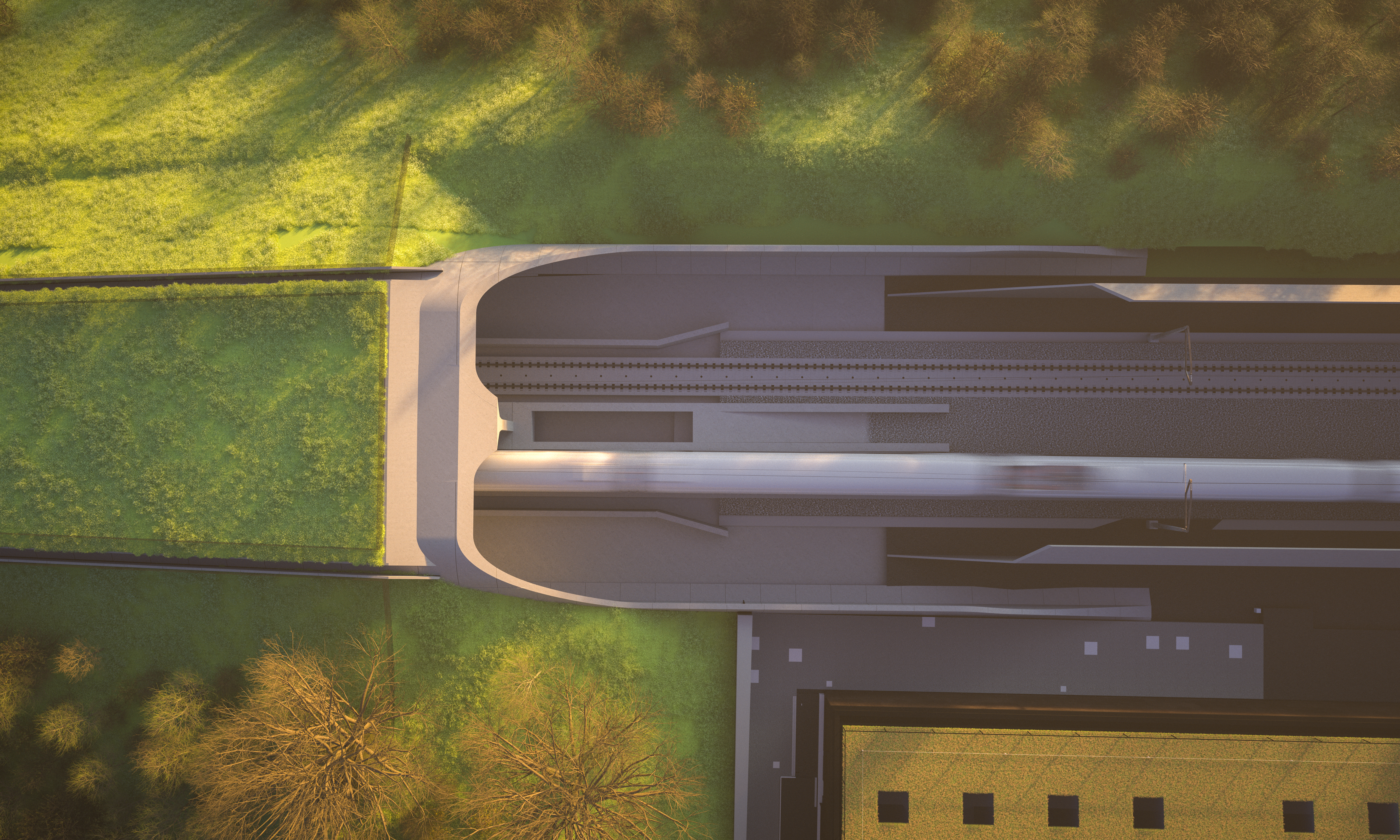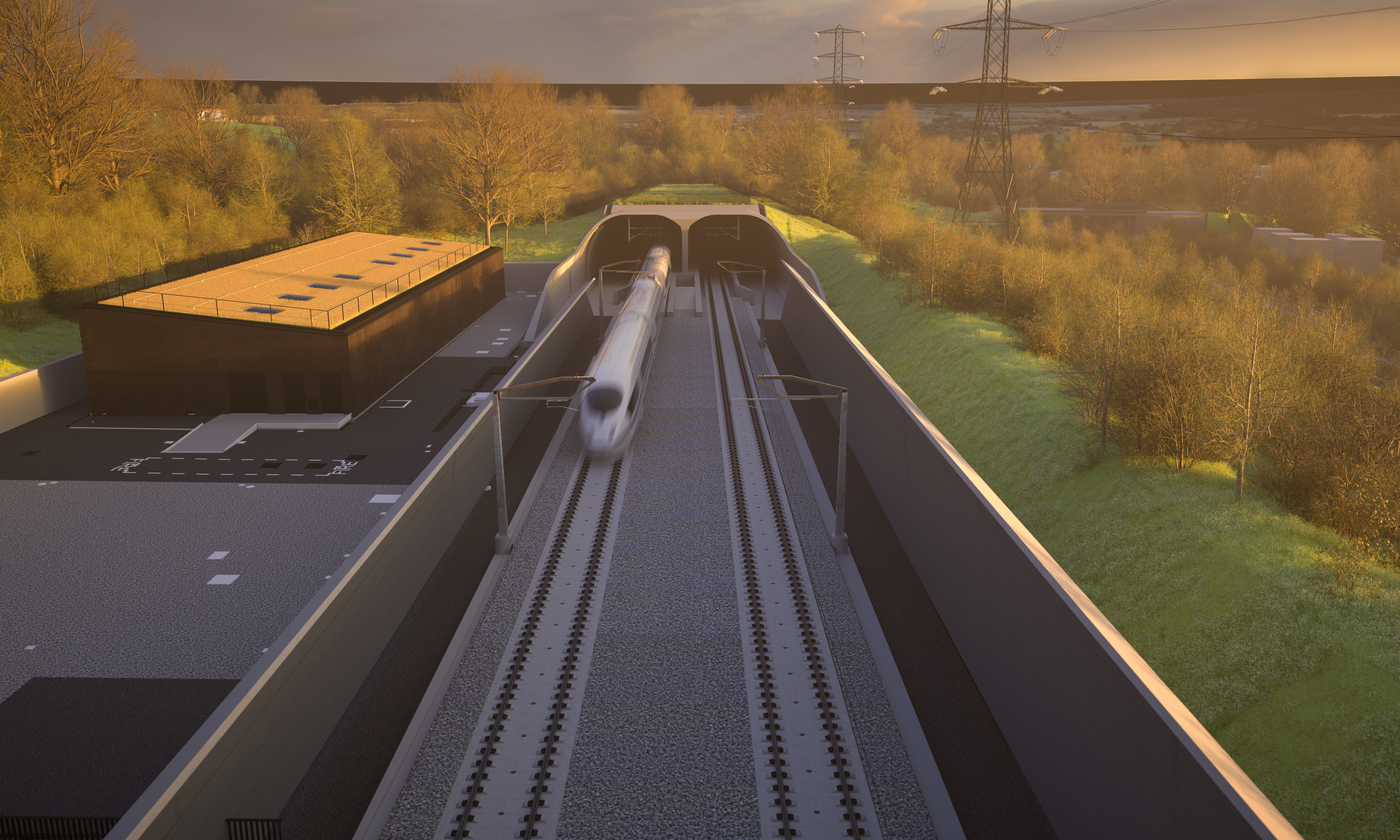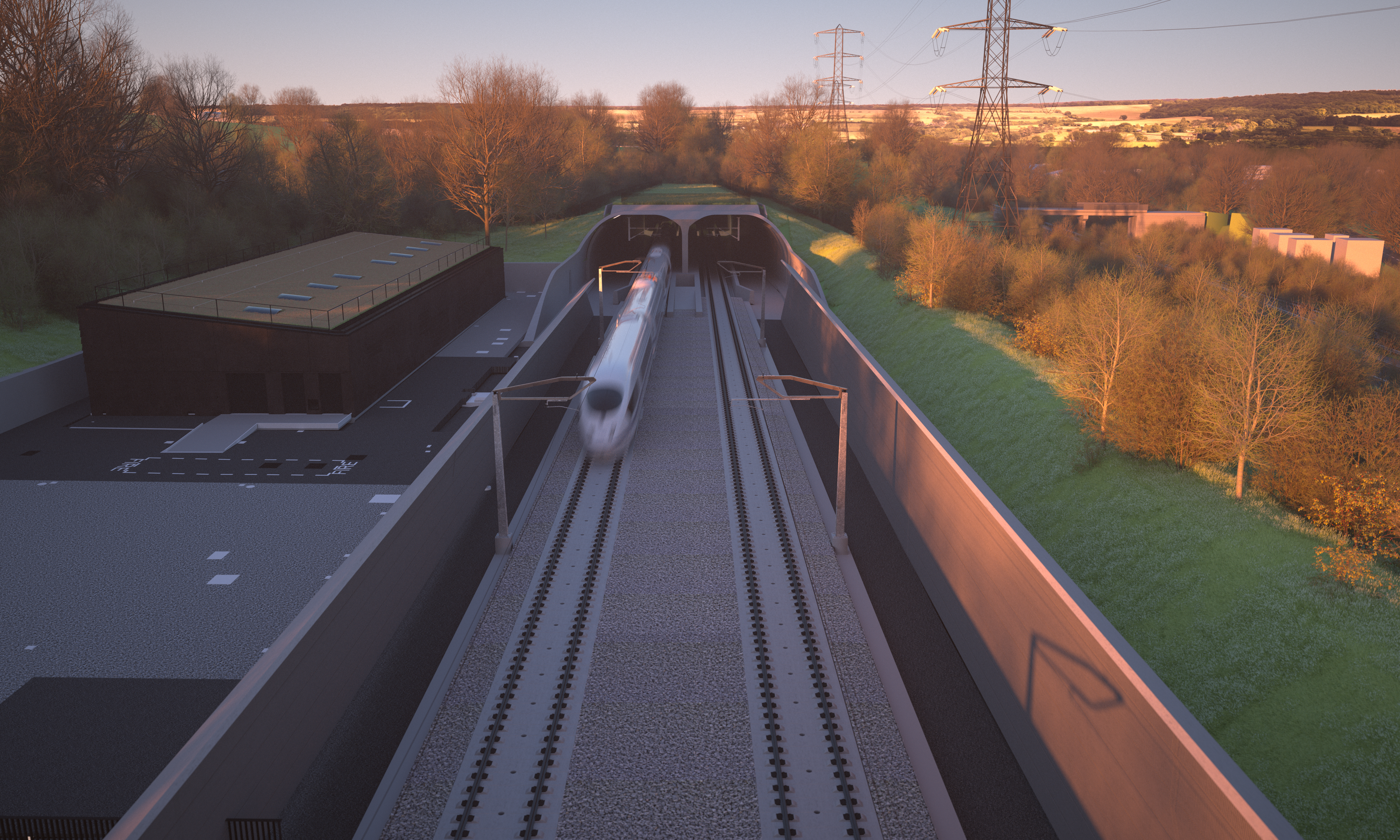 Visualisation showing the South portal of the Wendover green tunnel at dusk