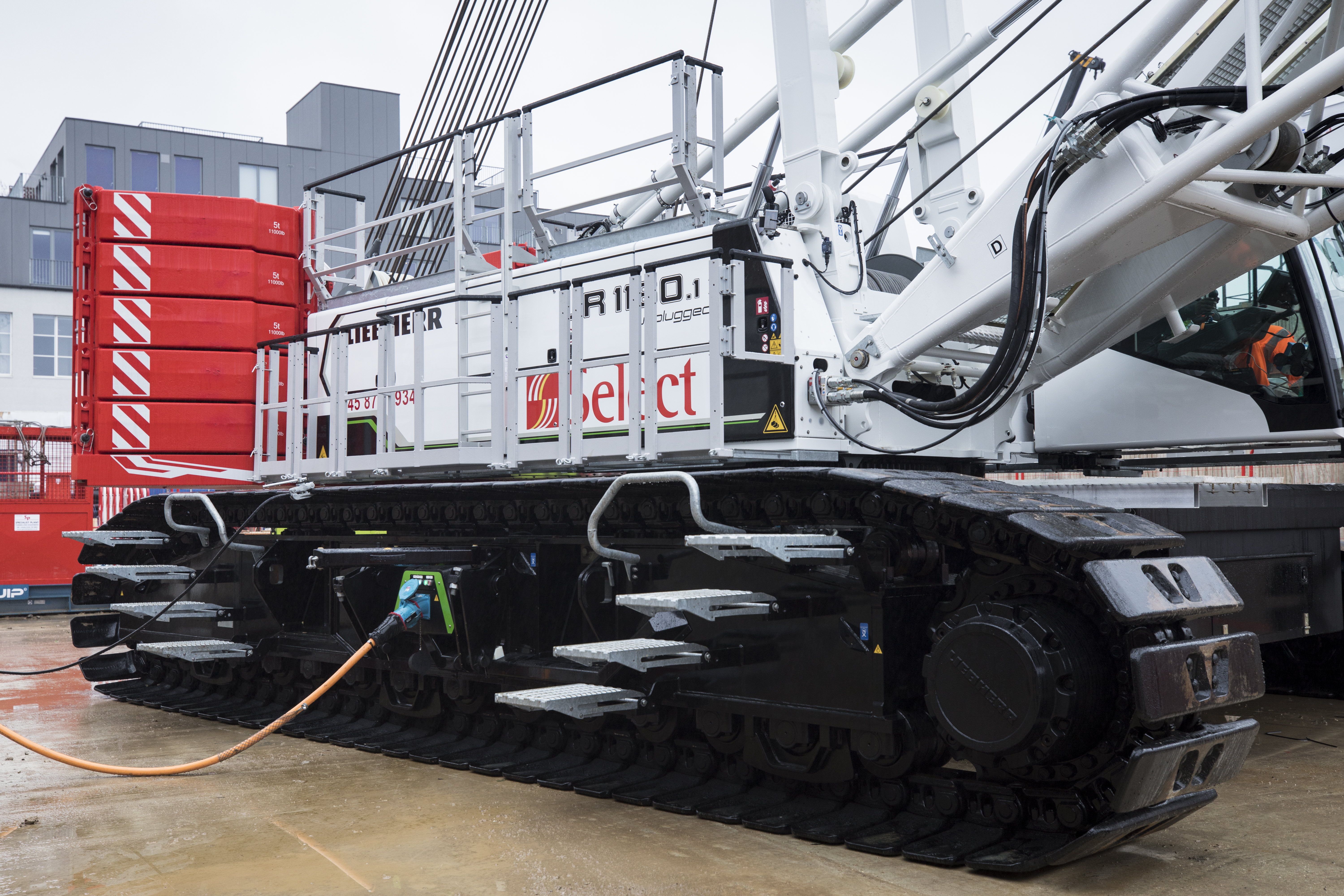 Zero emissions Liebherr electric crane at HS2's Old Oak Common site