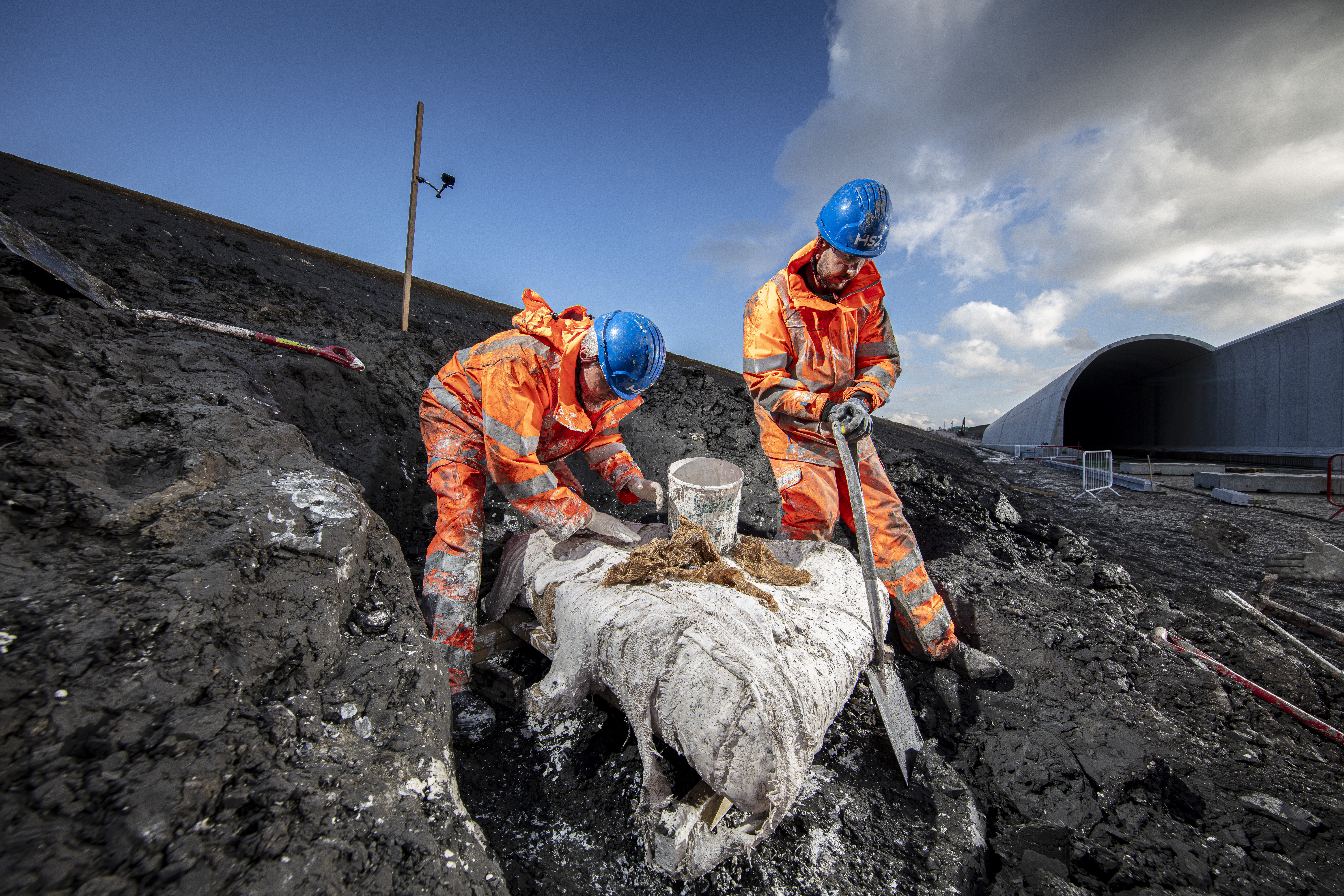 Fossil being cast in plaster prior to removal during a dig at the Greatworth green tunnel Feb 2024