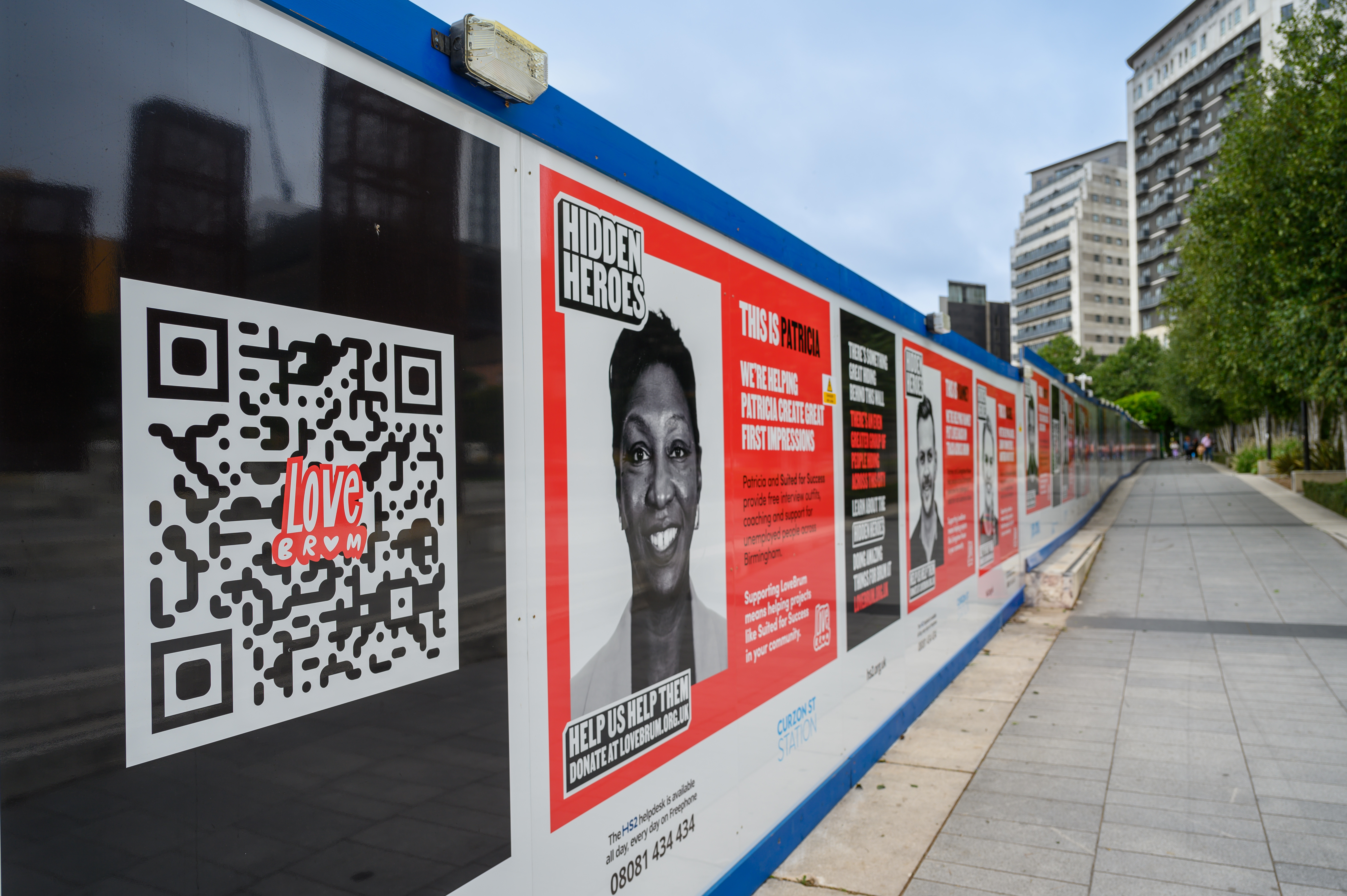 HS2's new Love Brum hoardings around Curzon Street Station site