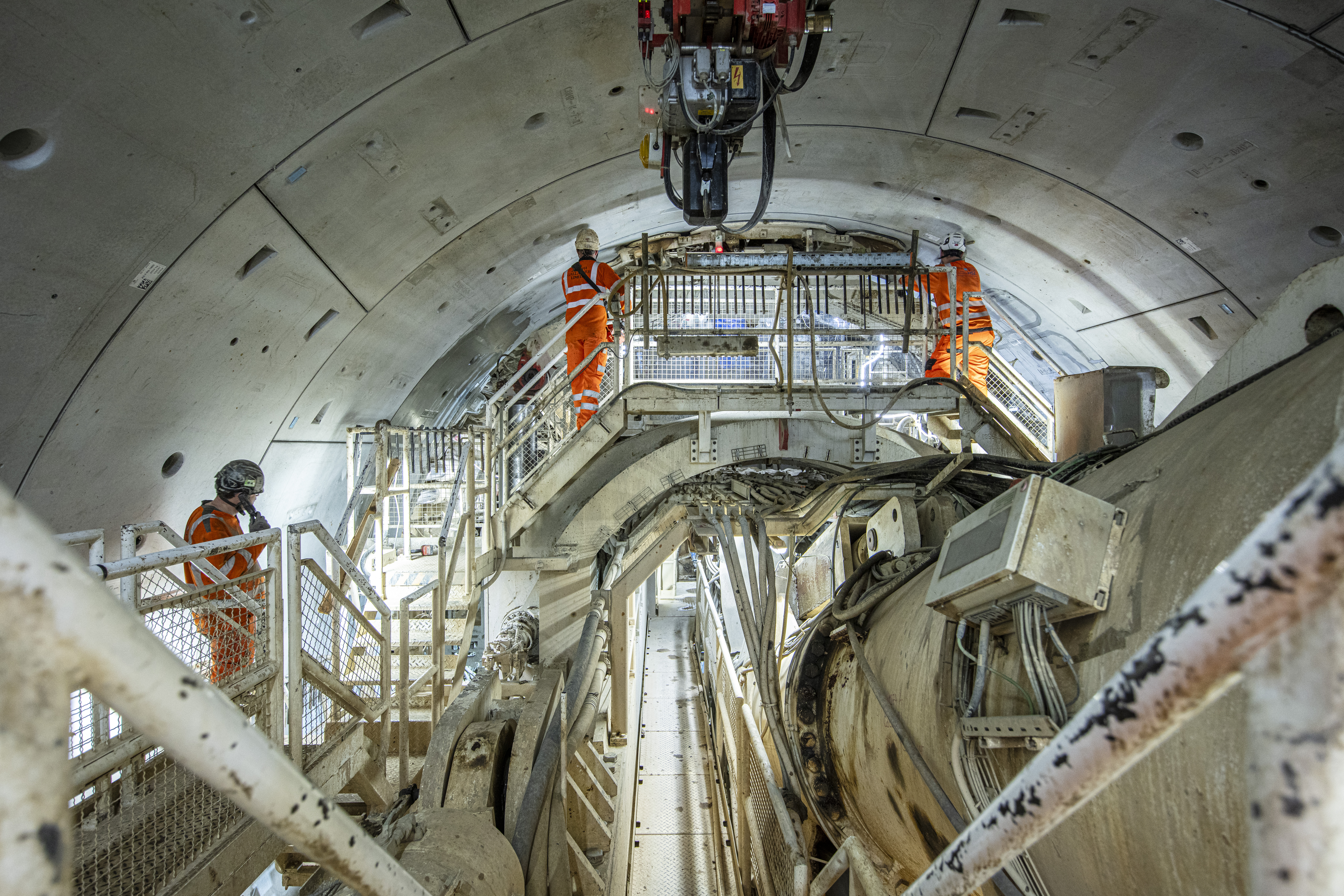 HS2 TBM Sushila installs tunnel segment for Northolt Tunnel West