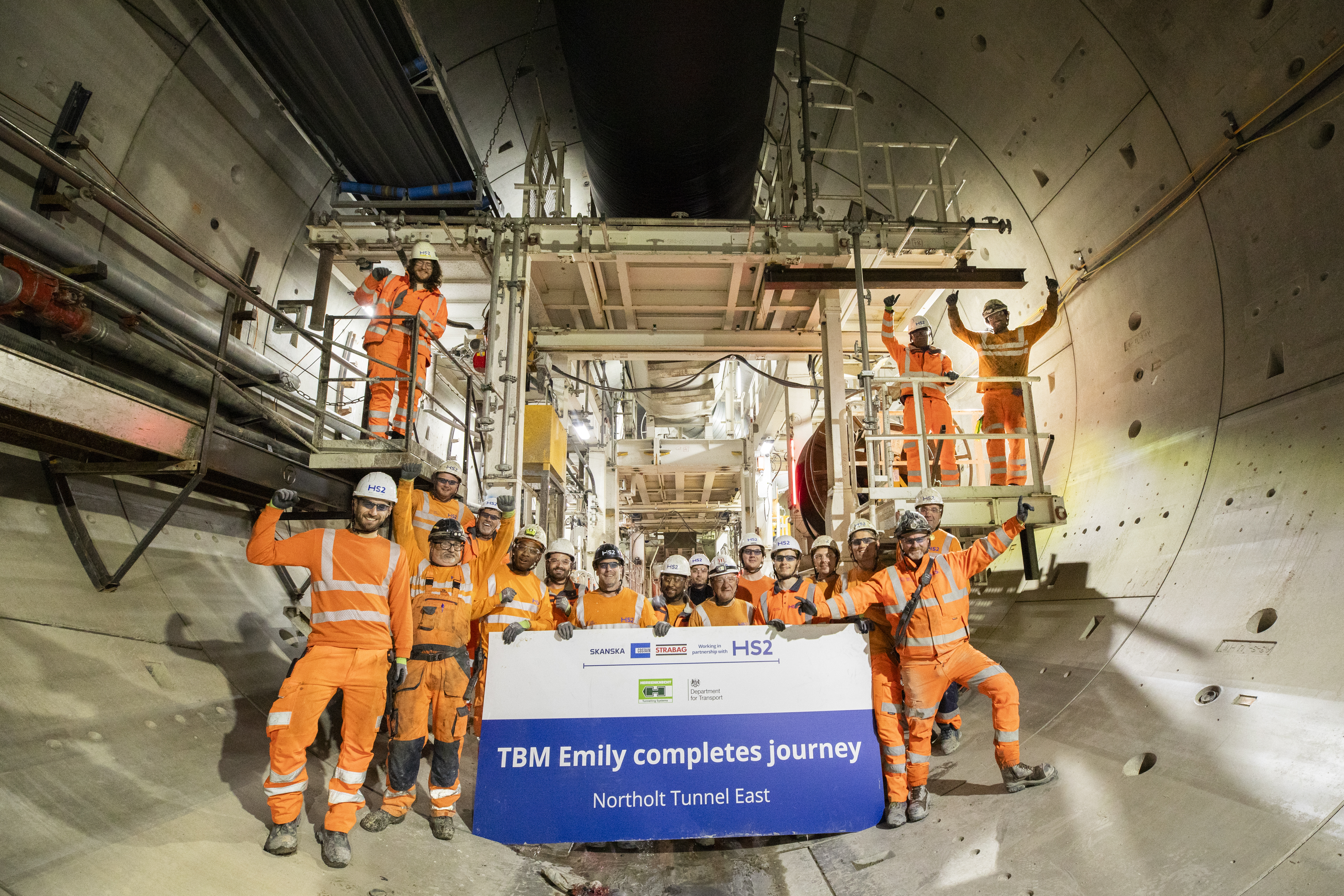HS2 tunnelling team celebrates TBM Emily completing 3.4mile journey