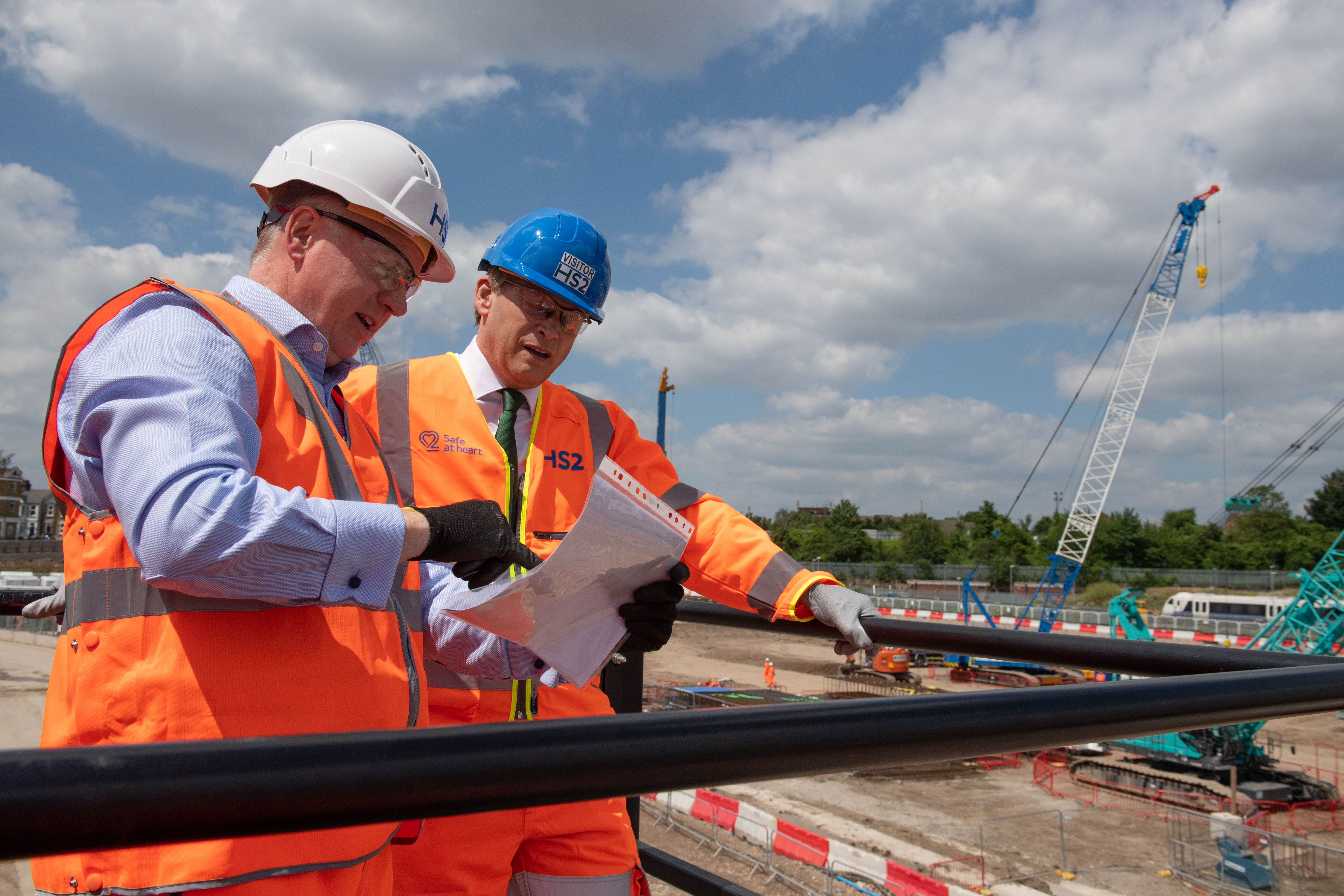 Transport Secretary Grant Shapps meets Mark Thurston and Matthew Botelle before signaling the start of main construction work on HS2's Old Oak Common station