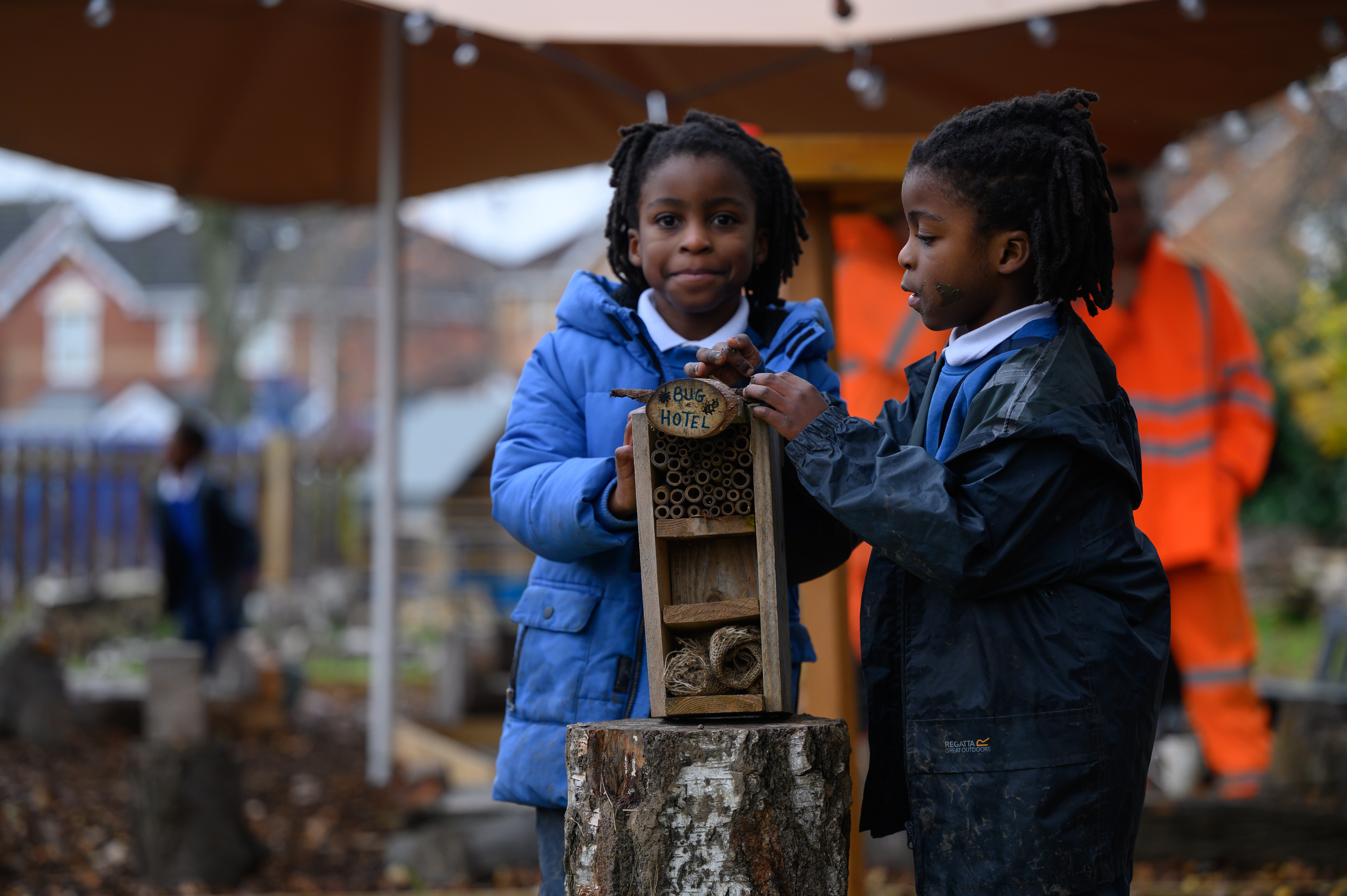 Download - Pupils with a bug hotel in the new Forest School.jpg