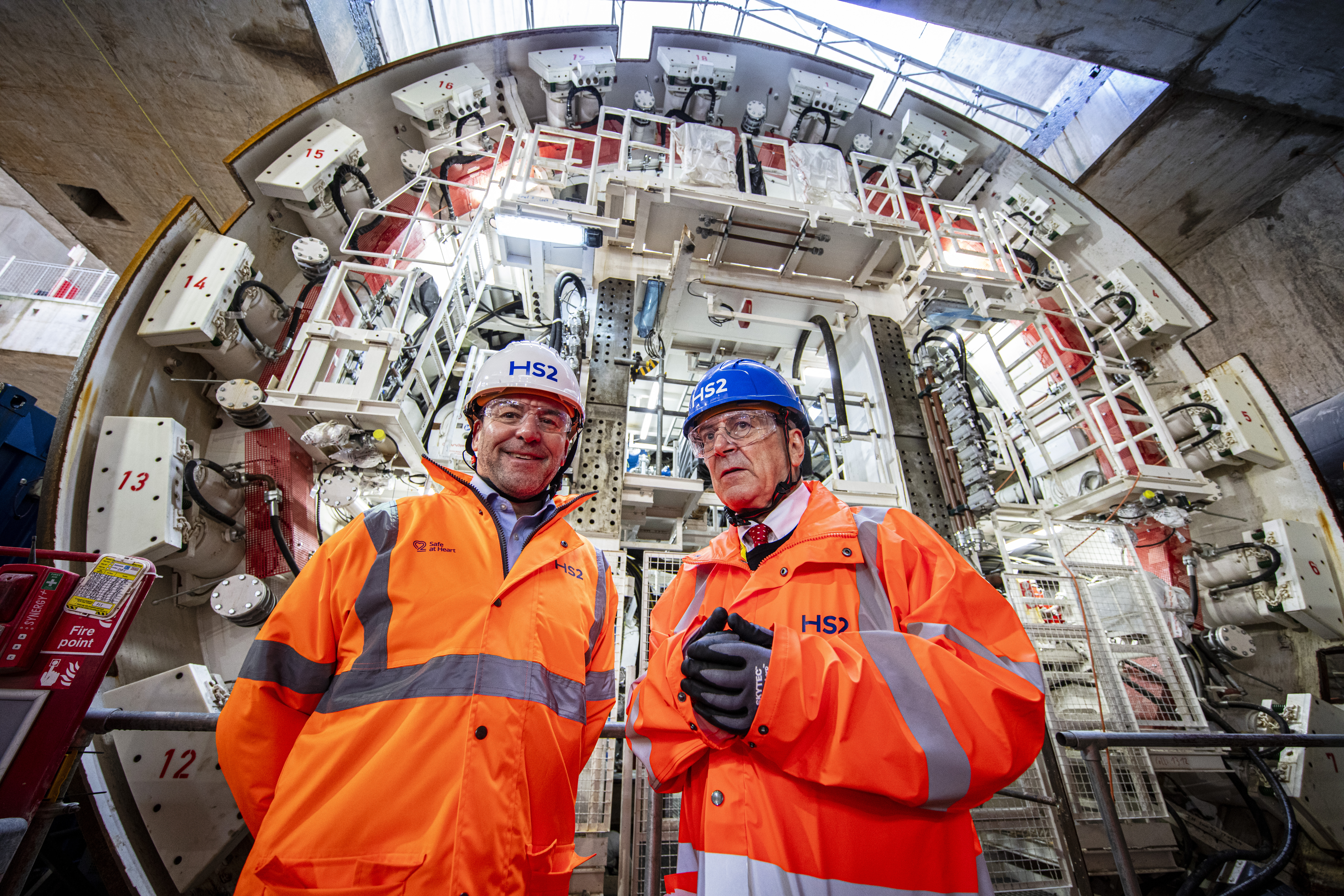 Rail Minister and HS2 CEO at Old Oak Common station box to see the two TBMs preparing to build HS2 to Euston