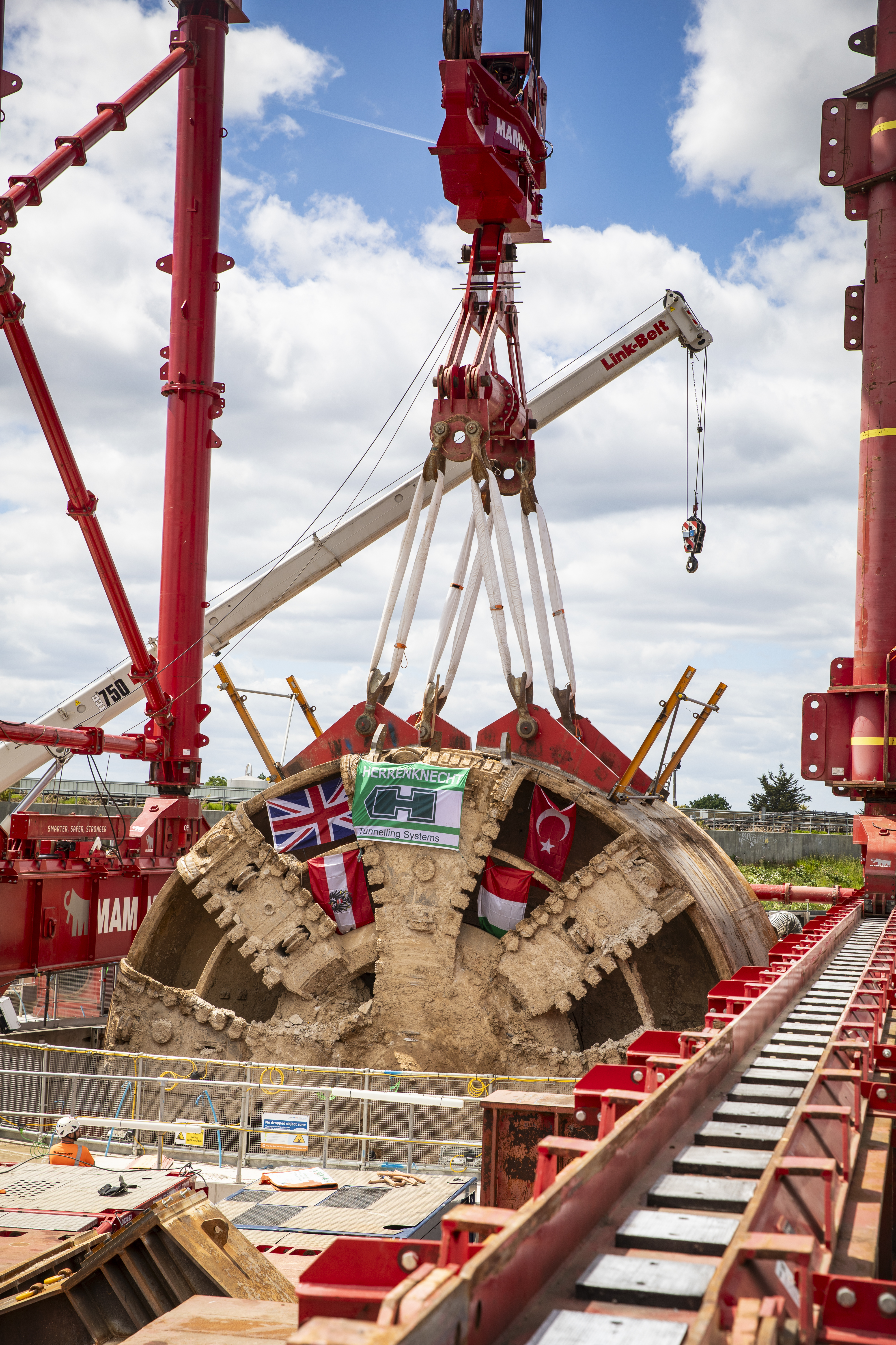 On Sunday 25th May, engineers working on the HS2 project lifted the TBM 9.48metre diameter cutterhead, front and middle shield, weighing 850 tonnes, using a large gantry crane. The tunnelling machine concluded its 5mile journey from West Ruislip in April, arriving in an underground reception chamber. TBM Caroline excavated over 1.2 million tonnes of earth and installed 4,217 tunnel rings.