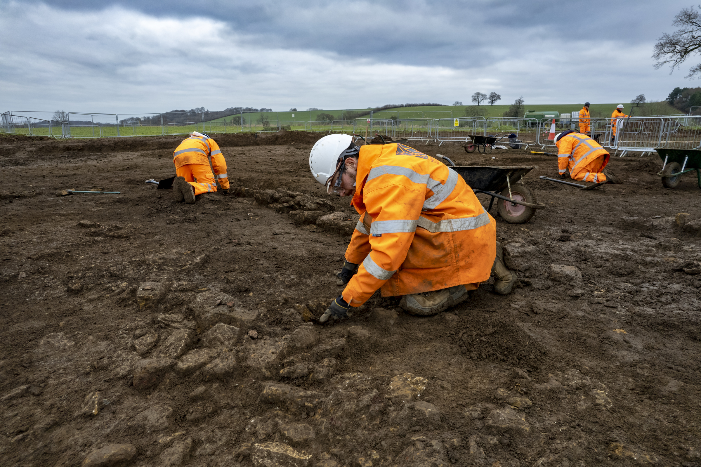 Image of archaeologists excavating a wealthy Roman trading settlement, known as Blackgrounds, in South Northamptonshire.